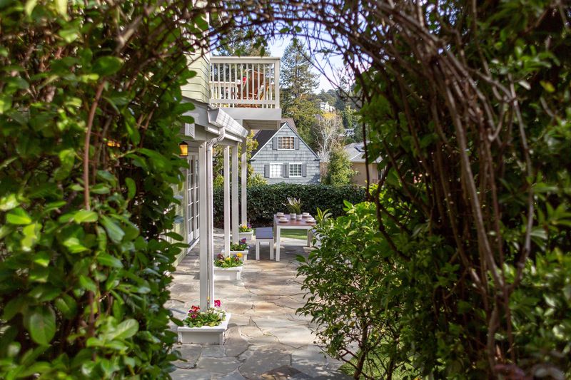 Just recently reinvented with high design upgrades—Prepare to be enchanted the moment you arrive. This Upper Rockridge oasis blends sophistication, comfort, and effortless California living. A rare find, it features exceptional design, meticulous craftsmanship, and a seamless indoor–outdoor flow. Level access leads to an expansive lawn, stone patios for dining and lounging by the outdoor fireplace and TV, and a private hot tub spa surrounded by mature trees.Thoughtfully renovated with timeless, old-world detail, the home is filled with warm natural light from expansive windows. Double French doors from the living and dining rooms open to the outdoor haven—ideal for summer gatherings and everyday relaxation. The newly remodeled kitchen balances style and function with soapstone countertops and curated finishes. The dreamy primary suite offers vaulted ceilings, hillside views, a spa-inspired bath with walk-in shower and jetted tub, and direct access to the outdoor hot tub for starlit evenings.