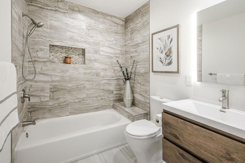 - Double Sinks, Marble, Oversized Tub, Shower over Tub - 1, Tile