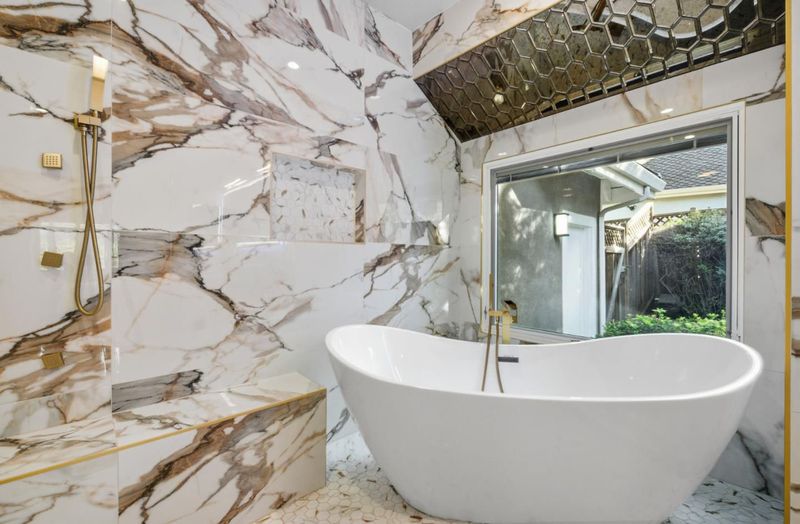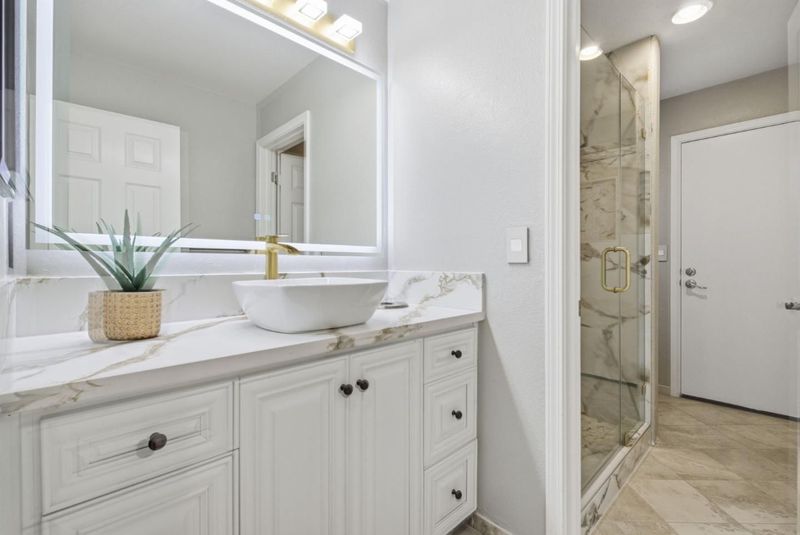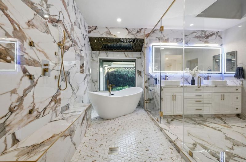 - Double Sinks, Dual Flush Toilet, Granite, Marble, Oversized Tub, Primary - Stall Shower(s), Updated Bath