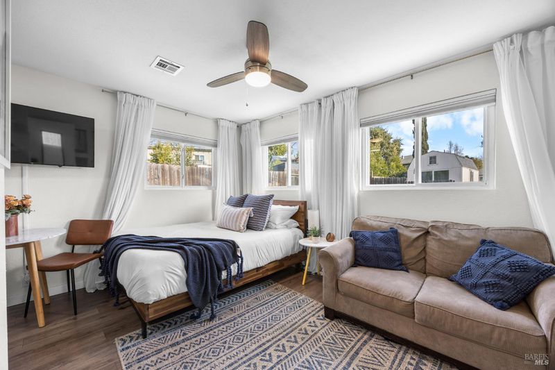 Welcome Home To 59 LA Cruz, where classic Benicia charm meets smart investment potential! This lovingly updated 3-bed, 2-bath gem has been quietly generating $24K-$34K annually through a beautifully designed rear studio suite that guests have raved about (check those 5-star Airbnb reviews!). The flexible floor plan features a private 1-bed/1-bath retreat with its own entrance, kitchenette & full bathideal for continuing the income stream, hosting extended family, or simply enjoying as an extra space. Thoughtful updates throughout: Brand-new roof (Jan 2026), gleaming original hardwood floors, refreshed kitchen with quartz counters & modern backsash (2023), central A/C (a true treasure in this neighborhood!), beautifully remodeled studio addition, fresh exterior paint and Hot tub hookups. Your private backyard sanctuary: Low-maintenance artificial turf, inviting fire pit, thriving raised garden beds with drip irrigation, a 5-variety grafted fruit tree & abundant strawberry plants. A 1-car garage and ample attic/crawl space storage. The lifestyle: A block to Robert Semple Elementary, neighborhood parks, near by local shops & cafs. Easy freeway access for commuters. Perfect for first-time buyers or families seeking flexibility. Don't miss this Rare Opportunity.