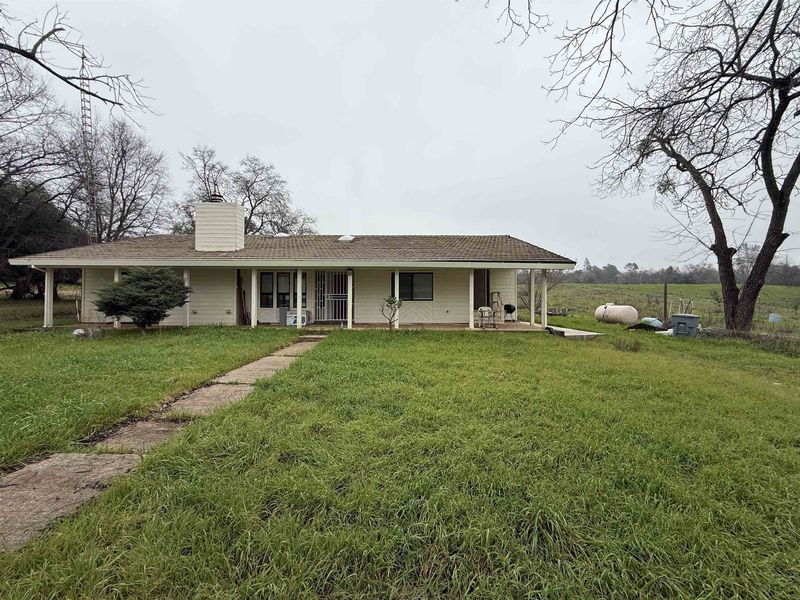 Spacious single-story home situated on approximately 6.89 acres of usable land. The property features a functional and well-designed floor plan with a large primary bedroom. Family room flows seamlessly into the open kitchen with breakfast bar, creating an inviting space for daily living and entertaining. The main house, guest house, and oversized detached garage have all been upgraded with 200-amp electrical panels. Main residence is topped with a durable clay tile roof. Approximately 1,800 sq ft detached garage offers excellent flexibility for storage, workshop, or multiple uses. Automatic security gate at the front yard provides added privacy. Ideal for buyers seeking space, comfort, and country living with convenient access to town. Buyer to verify all information.