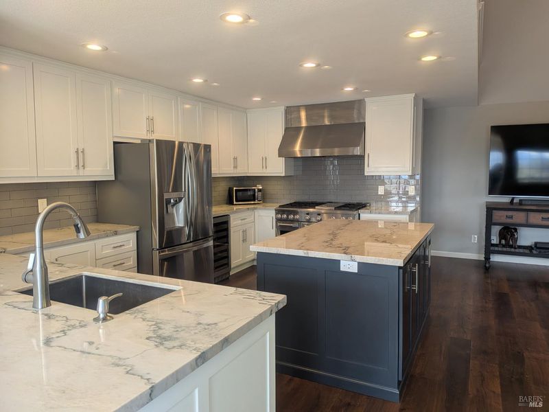- Breakfast Room, Granite Counter, Island, Kitchen/Family Combo, Slab Counter, Stone Counter