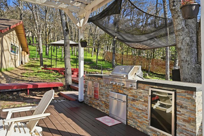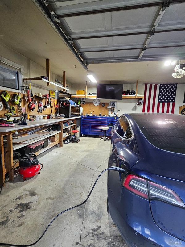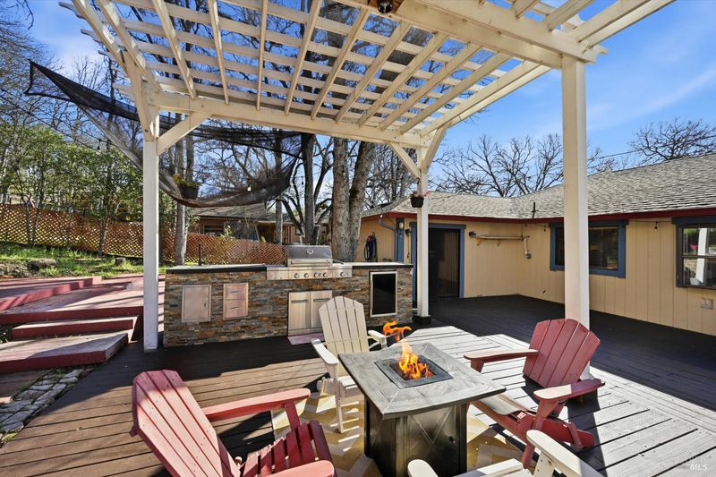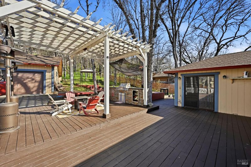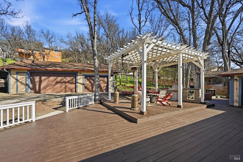 Nice single-story with a dream 3-car SHOP/garage in Hidden Valley Lake! Set on a nearly -acre lot, this 1,710 sq ft home offers 3 bedrooms, 2.5 baths plus a bonus game room that could easily be converted into a 4th bedroom if desired. Designed for easy living and entertaining, it features an open-concept kitchen and living area with a sunken living room and a beautiful custom TV/fireplace feature wall. Step outside to an expansive backyard deck with a pergola-covered outdoor kitchen, mature oaks for shade, and great privacyperfect for barbecues, gatherings, or relaxing evenings. The desirable detached 3-car shop/garage includes a half bath and a Tesla charger, and there is tons of parking with ample space for a full-size RV or trailer alongside the garage. The property is all electric with central heat and AC and is on public water. Located near the golf course and not far from the community clubhouse, this home sits in a prime spot within the Hidden Valley Lake community, which offers access to the lake, boat launch, golf course, clubhouse, and more. If you've been searching for a well-kept single-story home with serious shop/garage space, RV parking, and great outdoor living, this one is a must-see.