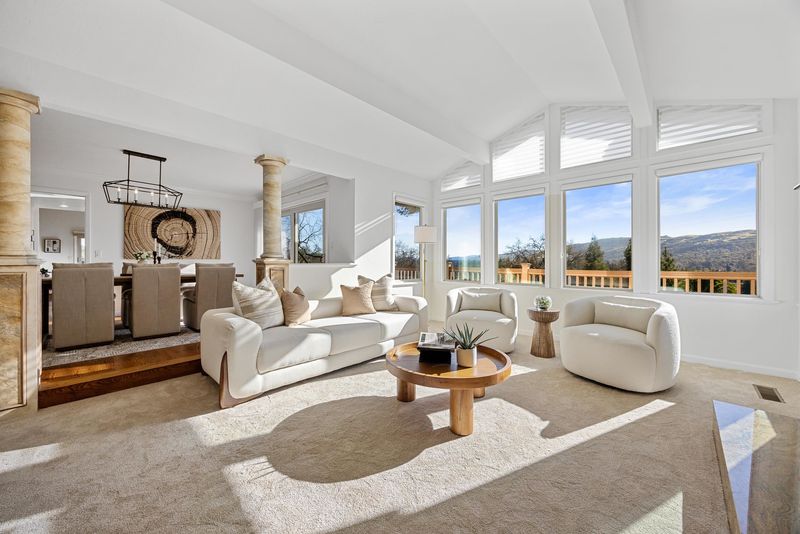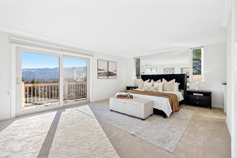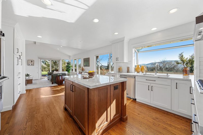 Located in Danville’s coveted El Pintado Loop, this cul-de-sac estate sits on nearly 1 acre w/ sweeping views of the Las Trampas Hills & offers an exceptional, thoughtfully designed layout. The home features 5 beds, 2.5 baths, 3,106 sqft of living space & hardwood flooring throughout the main living areas. The formal living room features vaulted ceilings, a wall of windows, new carpeting, & flows seamlessly into the formal dining room. Stunning hillside views grace every south-facing room & living space. The remodeled kitchen is appointed with Viking appliances including a 6-burner cooktop & double ovens, custom cabinetry, large center island, walk-in pantry, & designer French hood. The adjoining family room offers a custom entertainment center, wet bar w/ wine refrigerator, & direct access to the backyard, creating effortless indoor-outdoor flow. The primary suite provides a private retreat w/ deck access, dual closets, & a spa-like bath w/ soaking tub and scenic views. Outdoor amenities include a landscaped, low-maintenance yard, decorative pond w/ waterfall, rose garden, & expansive usable land w/ potential for gardening or a vineyard. Located just minutes from downtown Danville, parks, trails, Diablo Country Club, & Highway 680, this home blends privacy, luxury & convenience.