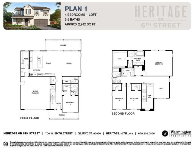 Brand new 4-bedroom, 3.5-bathroom home with approximately 2,942 square feet in the Heritage on Sixth Street community. Located on Homesite 8, this residence offers an open-concept layout filled with abundant natural light. The chefs kitchen features white designer cabinetry, brushed gold plumbing fixtures, quartz countertops, a large center island, a Bertazzoni induction range, premium appliances, and curated designer lighting. Tech-forward features include a Ring doorbell, smart garage opener with camera, smart thermostat, Wi-Fienabled lighting, Wi-Fi boosters on each level, a Wi-Fienabled water heater with recirculating pump, and solar with a Tesla Powerwall 3 option. Luxury Vinyl Plank Flooring runs throughout the main living areas, and expansive sliding glass doors connect the great room to a covered loggia for seamless indoor outdoor living. Boutique community of 19 homes near downtown Gilroy, dining, shopping, top-rated schools, and Caltrain Gilroy for easy commuting. Please check in at the sales office model| 7392 Ailes Ct. (Lot 12)