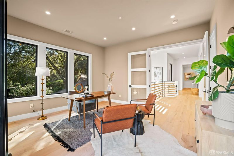 Come for the wow factor; stay for the views, privacy, and easy livability. This Happy Valley home is truly one of a kind. From the moment you enter the great room, you feel it - this is home. Soaring vaulted ceilings with oak beams, floor-to-ceiling windows, and retractable doors fill the space with light and create seamless indoor-outdoor flow. Open the doors and step onto the expansive loggia, complete with a wood-burning fireplace, Bromic heaters, and a ceiling fan for year-round comfort. With sweeping views and a serene setting, morning coffee and evening cocktails here feel truly special. The chef's kitchen impresses at first glance, yet functions beautifully day-to-day. Custom cabinetry, Thermador professional appliances, two dishwashers, a wine fridge, a butler's pantry, and a tucked-away tech room ensure everything has its place. The main-level primary suite is the ultimate retreat that will absolutely blow you away, featuring heated floors, a soaking tub, soaring ceilings, a show-stopping two-story walk-in closet, easy outdoor access, and a calm, private feel. Downstairs offers incredible flexibility with a large family room, second laundry room, and 3 additional bedrooms and baths. Set on 1.33 acres in coveted Upper Happy Valley, this home was designed by highly-regarded Steven Kubitschek and built (2023) by Blueline Custom Builders, known for high-end custom homes. All just minutes from Hwy 24, BART, Downtown Lafayette, top-rated schools, Oakwood Athletic Club, and the Lafayette Reservoir. Welcome home.