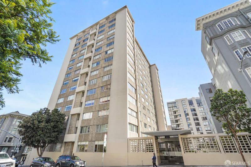 Rarely available 12th-floor studio in Pine Terrace, offering downtown views, great natural light, smart design, and true quiet living in a solid concrete building at the junction of Nob Hill and Downtown at Pine & Taylor. This thoughtfully designed home features real hardwood floors, a chef's kitchen with bar seating, a queen-size wall-bed system, a large custom walk-in closet, and additional built-in storage that make the space live larger than expected. An upgraded double-pane window frames a city outlook while improving comfort and sound insulation. Deeded parking and dedicated storage are included in this 99 Walk Score, transit-rich location surrounded by restaurants, shops, theaters, parks, and everyday conveniences. Pine Terrace is a pet-friendly high-rise with lobby security. A unique opportunity to own a high-floor, turnkey residence in one of the city's classic buildings.