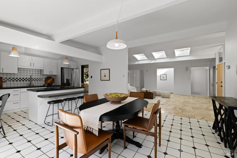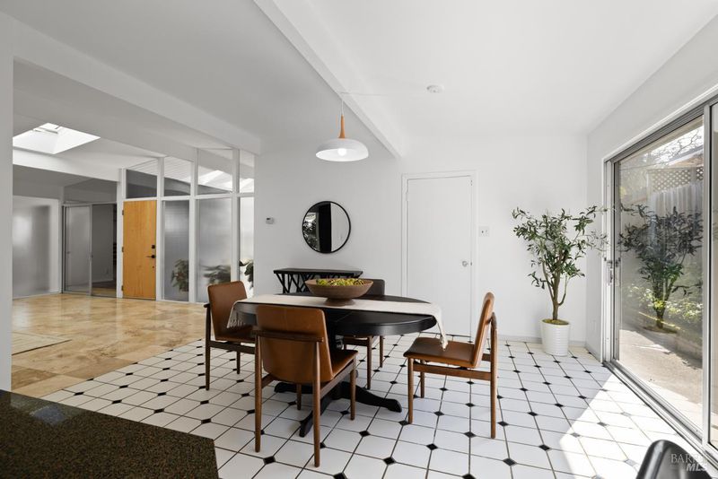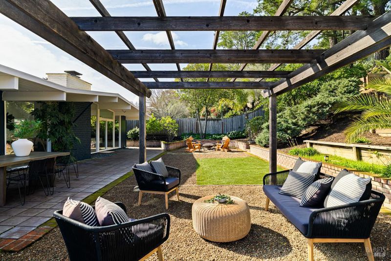 Welcome to 451 Nova Albion Way, a beautifully designed, mid-century, Eichler home in the heart of the Terra Linda area of San Rafael. This spacious 2,194 sq. ft. property features 4 bedrooms, 2 bathrooms, and an open floor plan for ultimate versatility. Step inside and be welcomed by stunning floor-to-ceiling windows and skylights throughout that fill the home with natural light. The open kitchen is truly the heart of the home, complete with a granite island, breakfast bar, and large eat-in dining space. There is also a large dining room off the living area with room enough for two separate sitting areas. The warm and inviting living spaces are perfect for cozy evenings around the wood-burning fireplace. The primary ensuite has double sinks and a walk-in closet. Thoughtful design elements combine functionality and comfort in every corner of this home. Step outside to your private oasis featuring a private backyard, fire pit, pergola and plenty of space for relaxation or entertaining. The yard offers the perfect balance of privacy and tranquility, ideal for enjoying San Rafael's delightful weather. Don't miss your chance to make this stylish property at 451 Nova Albion Way your own. Easy access to several great schools, restaurants, shopping and 101.