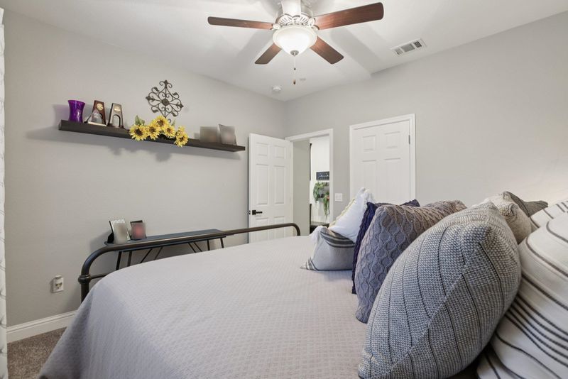 Stunning two-story home with a resort-style backyard designed for elevated living and entertaining. This maintained residence offers a bright, open layout with refined finishes and versatile spaces ideal for work-from-home, guests, or multi-generational living. The interior features spacious bedrooms, each with its own walk-in closet, updated bathrooms with dual vanities, and a well-appointed primary suite designed as a true retreat. The owner’s bath includes an extra-large walk-in shower and elevated-height vanities for a spa-like feel. Neutral designer tones and abundant natural light create a polished, move-in-ready atmosphere. A generous upstairs loft offers flexible space for a media room or lounge, while a built-in desk with filing cabinets and shelving provides a dedicated workspace. Step into the backyard retreat, complete with a custom Trex deck with built-in lighting, a covered patio with ceiling fans, and a hot tub featuring a dramatic rock waterfall. Multiple seating and dining areas, a freestanding fire pit, raised planters, and string lighting create a private, resort-like setting ideal for entertaining. Conveniently located near parks, schools, shopping, and commuter routes. A blend of sophistication, comfort, and outdoor living best experienced in person!