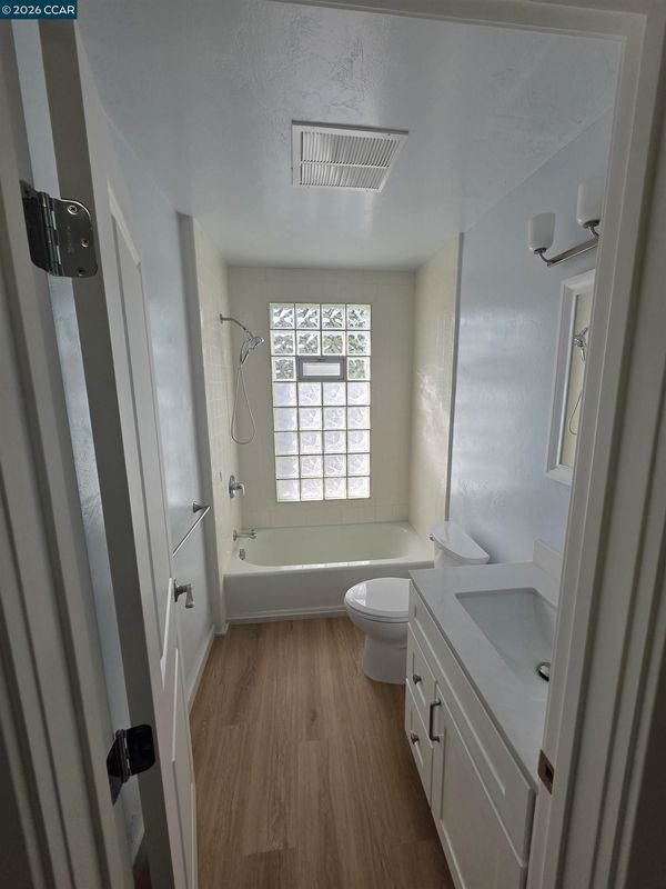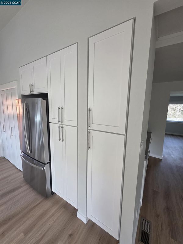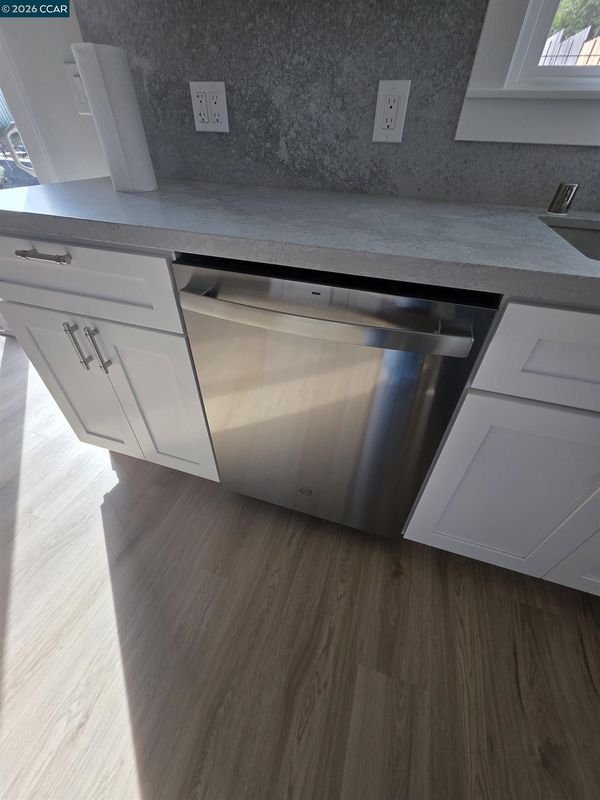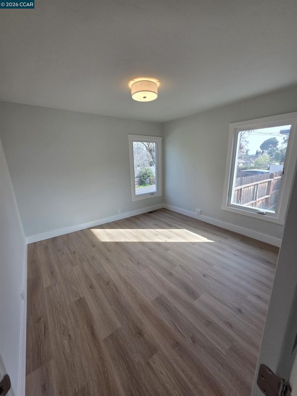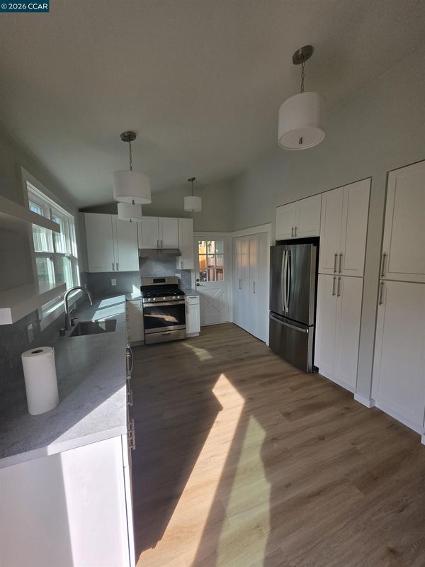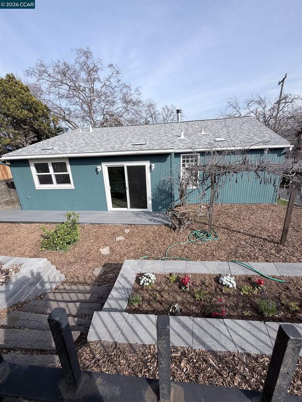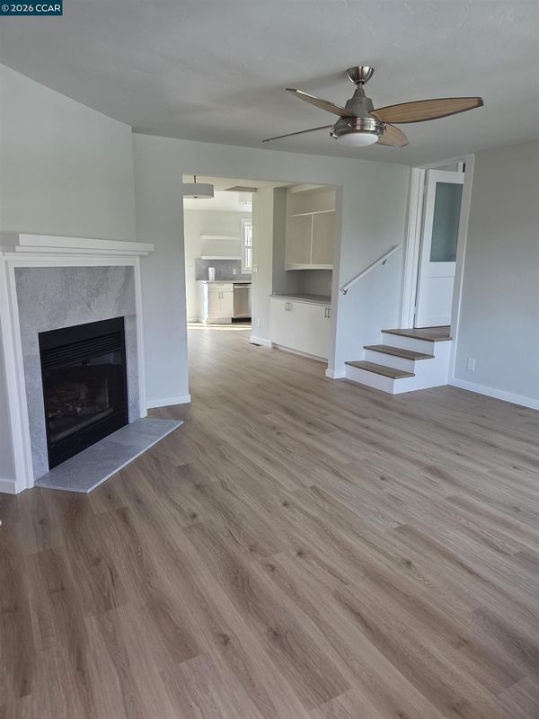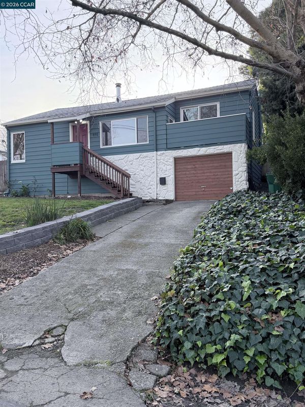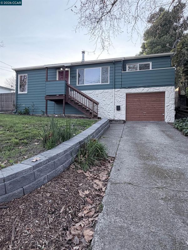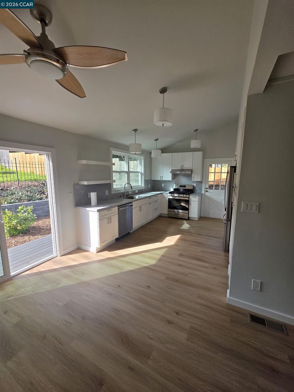 WOW! This recently renovated 3br, 2ba home on a large 7,000sf lot is a MUST SEE. Walk into the living room, with El Sobrante hills views and enjoy the gas fireplace. Up 3 stairs is your small main bedroom, with deck overlooking front yard, or make it a home office that is terrific if you see people at work. Back to the main level is a comfortable sitting area with large built-in that opens to the dining area and totally updated kitchen, with built-in appliances and stackable washer/dryer. Off the main hallway are 2 large bedrooms and an adjacent updated bath. LVP flooring throughout, freshly painted inside and out, and a huge backyard. Great for play, pets, animals, or even build your own ADU. Plans are available for a 2br, 2ba ADU (included, depending on terms). One car garage, and 2 driveways make off street parking easy. Don't miss this one!