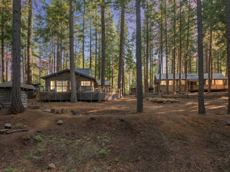 Tucked away on approx. 2.2 acres along a creek, this lodge style property has 3 cabins, sauna, and workshop, all nestled among trees and trails. Your next adventure getaway might not be as far away as you think. Just a short distance to Lake McCumber and near Lassen Volcanic National Park, the setting provides year-round access to fishing, hiking, camping, and winter recreation. The main cabin offers approx. 1,400 SqFt. w/ open-beam vaulted ceilings, bathroom, and flexible spaces that can accommodate additional bedrooms or updates. A deck overlooks the creek for prime outdoor living. The second cabin, approx. 1,000 SqFt., feat. 2 bed/1 bath, vaulted ceilings, kitchen, and large windows framing beautiful views. The third is a studio w/ loft, wet bar, and composting outhouse, w/ potential to upgrades. Other structures include a sauna w/ shower, workshop, and paths to swimming holes and creekside spots. Spanning 2 parcels, the property doesnt require flood insurance and offers ample parking. With room for updates and personalization, this property offers many possibilities, as a retreat, year-round home, or investment. Furnishings may be included.