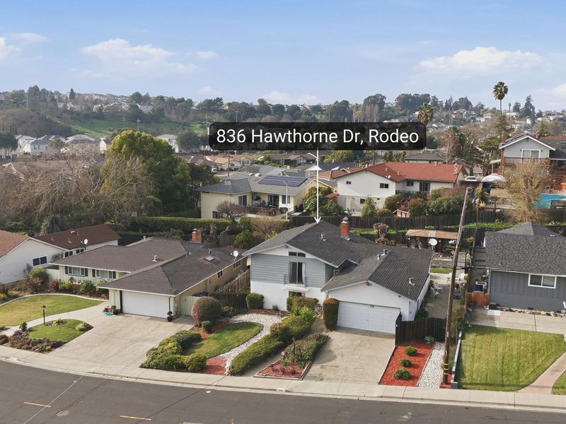 Step into this well-kept Rodeo classic where original character meets vintage charm and everyday comfort. This split-level home features a bright main living space with a vaulted ceiling, exposed wood beam, and a cozy wood-burning fireplace that creates a warm, welcoming feel. The layout flows naturally from the living and dining areas into the kitchen, breakfast nook, and family room—perfect for daily living and casual gatherings. With four well-proportioned bedrooms, the home offers a private upper-level primary suite with its own bath, while three additional bedrooms are thoughtfully located on the lower level. The backyard is flat, well maintained, and versatile, ideal for gardening, entertaining, or relaxing outdoors. An attached garage and wide driveway add convenience. Located near schools, parks, and shopping, with easy freeway access and close proximity to Hercules, El Cerrito BART, San Francisco, and the greater Bay Area, 836 Hawthorne presents a rare opportunity to enjoy vintage style, solid condition, and long-term potential in a commuter-friendly location.