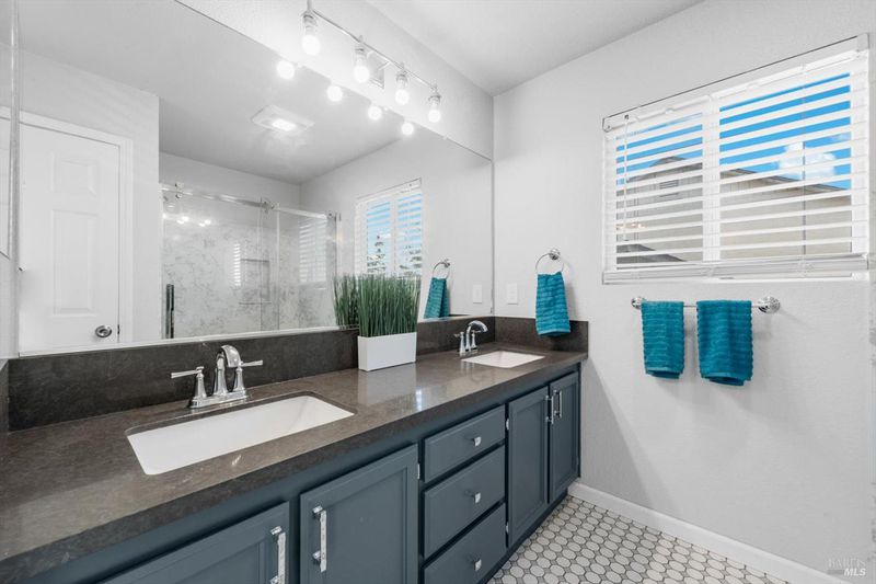 - Double Sinks, Shower Stall(s), Tile, Walk-In Closet, Window