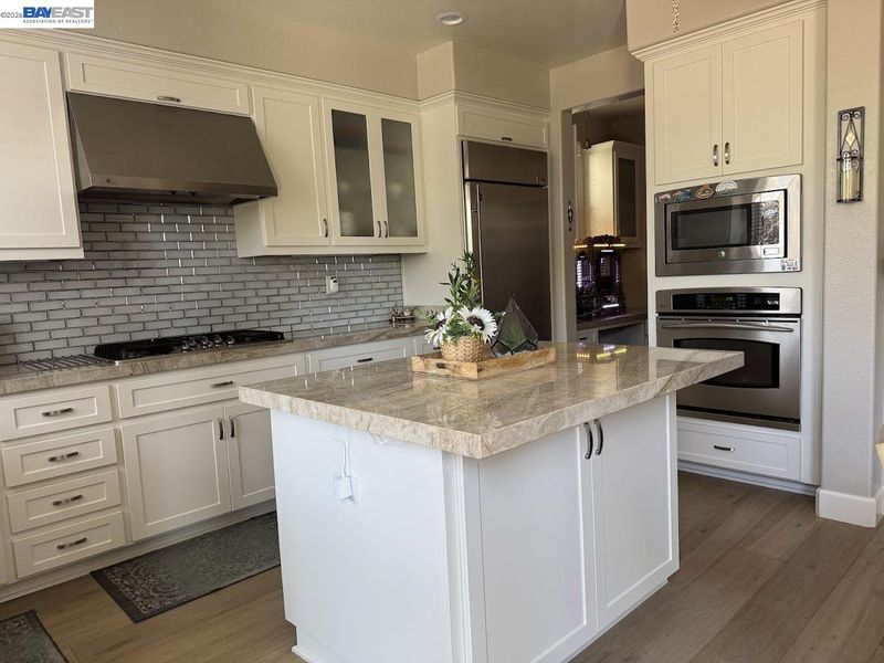 - Gas Range, Microwave, Oven, Refrigerator, Gas Water Heater, Water Softener, Stone Counters, Gas Range/Cooktop, Kitchen Island, Oven Built-in, Updated Kitchen
