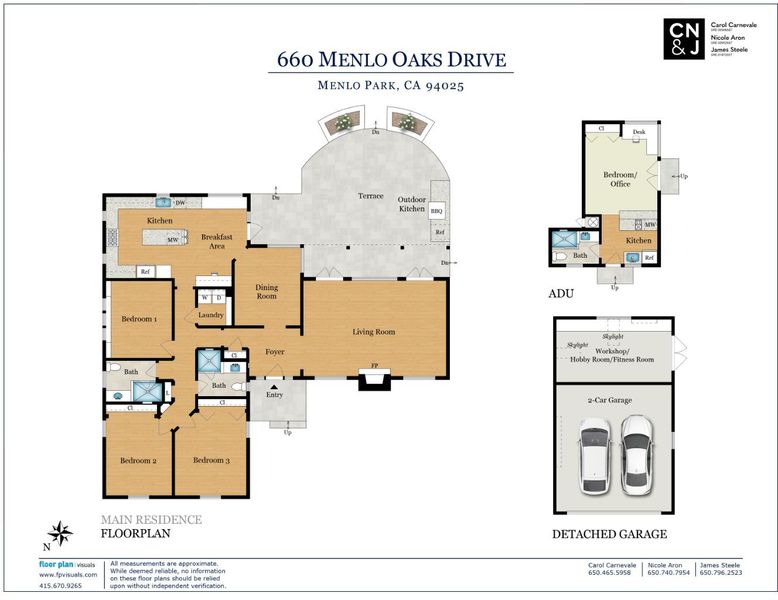 Classic architecture and beautifully curated gardens define this stylishly remodeled Menlo Oaks one-level home set on just over one-half acre. The extensive grounds also include an ADU and a detached two-car garage w/ adjoining hobby room.