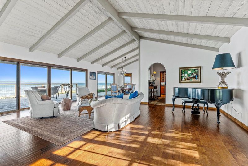 Along the coveted stretch of Opal Cliff Drive, this one-of-a-kind property offers one of the most desirable waterfront locations in Santa Cruz County featuring a large parcel, approximately 127 linear ft of ocean frontage, & sweeping panoramic ocean views. Perfectly positioned between Pleasure Point & Capitola Village, it overlooks world-class surf spots including The Hook, Sharks Cove, & Privates, & is just minutes to beaches, shops, & coastal dining. This custom-built, one-owner home maximizes its oceanside setting with breathtaking views from nearly every room. Set back from the street on almost half an acre, the property welcomes you with a spacious parking courtyard, lush lawn, & inviting entryway. Inside, enjoy vaulted ceilings, cozy fireplaces, & walls of glass that open to an ocean-view deck, seamlessly blending indoor & outdoor living. The main level includes the primary suite, kitchen, living areas, & a den/optional 4th bedroom, offering flexibility for single-level living. Upstairs are two bedrooms, a shared bath, & a deck with coastline views. Originally designed as a three-car garage, it now features a two-car setup with workbench & built-in storage. Recent improvements include a professional soil stabilization system along the cliffside & refreshed landscaping.