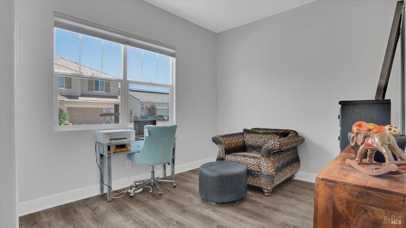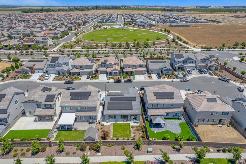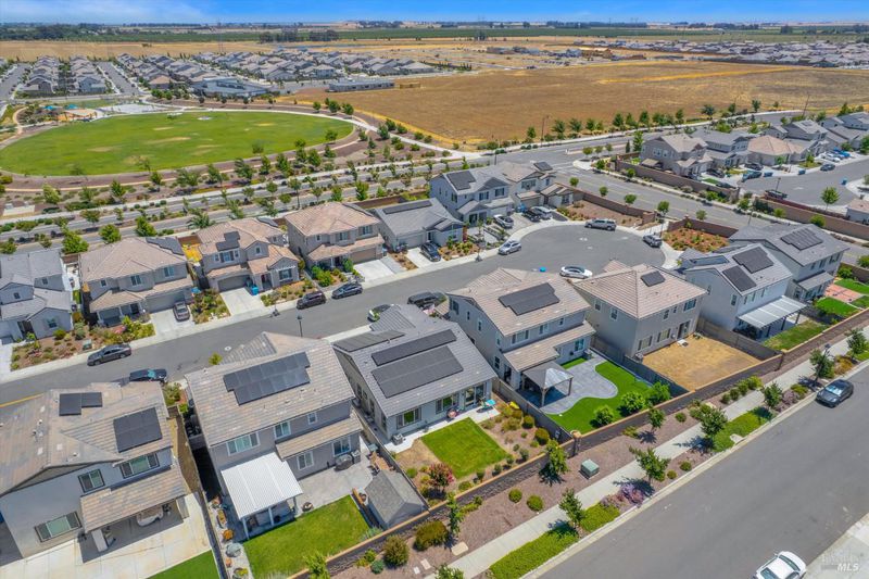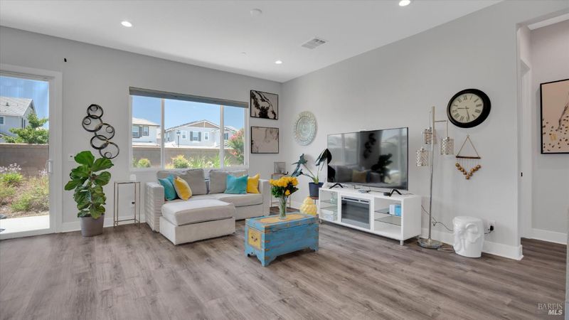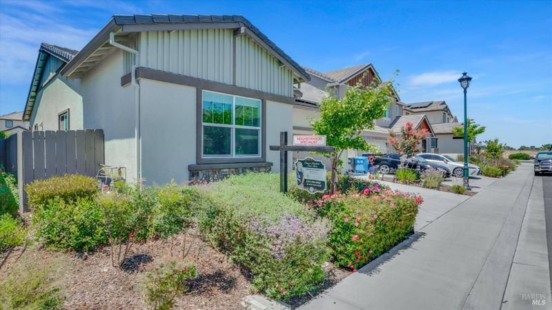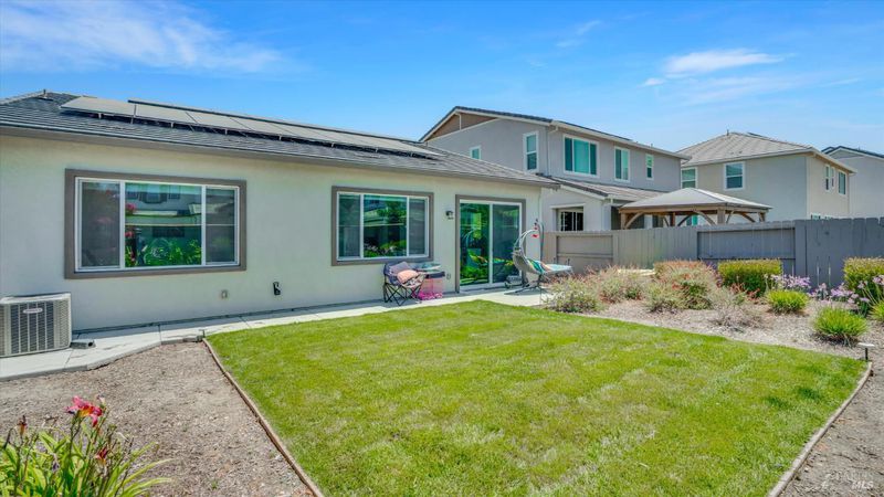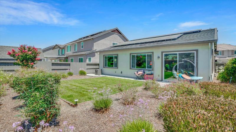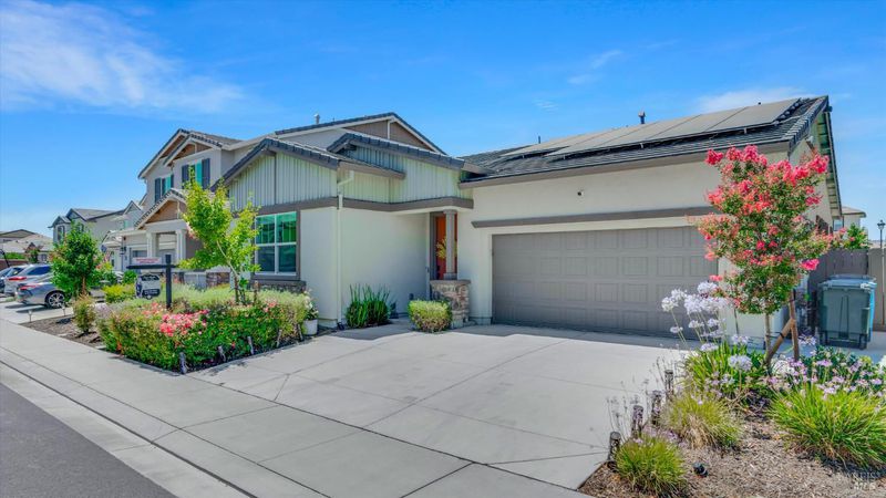 Welcome to an exceptional opportunity in one of the area's newest communities. This nearly new, single-story home is ideally positioned on a premium lot in a quiet court location with no rear neighbor, a rare offering in Brighton Landing. Designed for comfort, efficiency, and convenience, the home features high 10-foot ceilings, luxury vinyl plank flooring throughout, and an owned water softener. The open-concept layout offers high-end finishes and a beautifully appointed, designer-inspired kitchen, creating a bright and functional space for both everyday living and entertaining. Abundant natural light and a split floor plan provide privacy and flexibility, ideal for shift schedules, visiting family, or a dedicated home office. Built just three years ago, this home is well-suited for military and commuter lifestyles with its close proximity to Travis Air Force Base and Interstate 80. A Tesla charger and two battery backup systems support uninterrupted power and reliable vehicle charging, while the solar system delivers significant energy savings with low monthly costs, no maintenance responsibilities, and an easy transfer to the new owner. Turn-key and energy-efficient, this residence offers peace of mind, low operating costs, and minimal upkeep. With no HOA and a quiet court setting, it's an ideal retreat after days, combining smart living with lasting value.