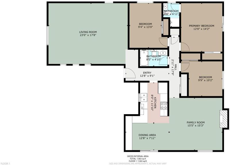 3BD/2BA single-level California Ranch on an 8,625 SF lot w/pool in popular Central Pinole. Built in 1958, this well-loved home offers approx. 1,526 SF and appears ready for move-in, while providing opportunity for future updates over time. The home features a large formal living room w/abundant natural light, plus a separate family room w/brick fireplace, adjacent to the kitchen and dining area. Sliding doors provide indoor-outdoor access to the rear yard. The centrally located galley kitchen offers functional cabinet and counter space and connects directly to the dining area. A private bedroom wing includes 3 BDs, including a primary suite w/en-suite BA and sliding doors to the backyard and pool. A 2nd full BA serves the remaining bedroom and guests. Set on an 8,625 SF lot w/no direct rear neighbors, the fully fenced backyard includes a vintage in-ground pool, patio areas, and space for outdoor dining, gardening, pets, and play. Conveniently located near local schools, parks, shopping, and commuter routes, w/ easy access to I-80, public transit, and regional amenities.