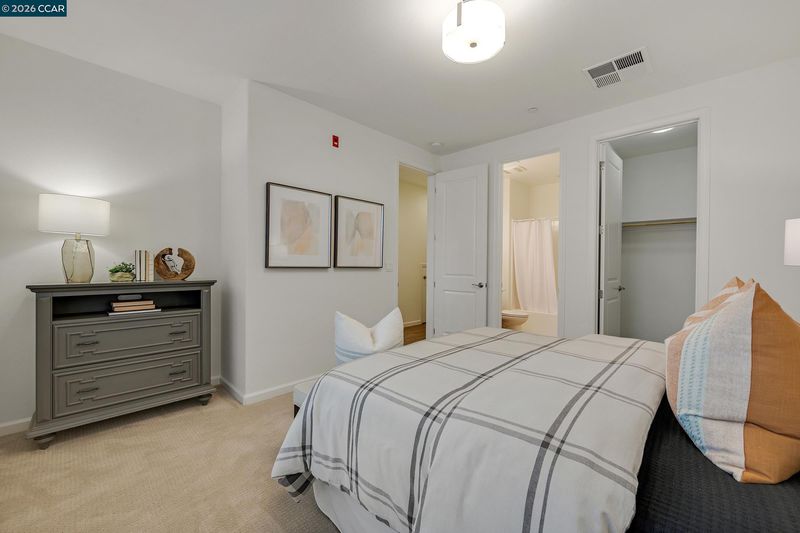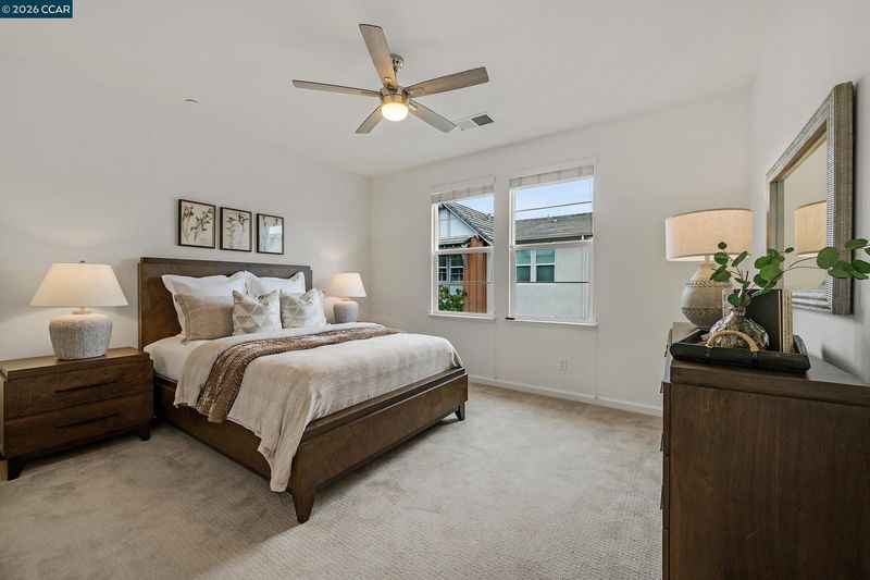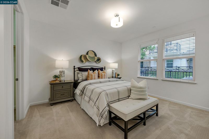 This stylish, NORTH facing, move-in-ready townhouse-style condo offers 3 en suite bedrooms for ultimate comfort and privacy plus office and 3.5 baths. The first floor features a private bedroom and full bath with walk-in closet—ideal for remote work/multi-generational living or guests. On the second floor, you’ll find an inviting open-concept living space with wood flooring, a bright living and dining area with balconies on both ends and a Chef's Dream kitchen equipped with a gas stove, stainless steel appliances, upgraded cabinetry and a spacious island. On this level is also an office and half bath. The third floor has a generous primary suite with walk-in closet, dual vanities, and shower plus an additional bedroom en suite. The third floor hosts a generous primary suite with a walk-in closet, dual vanities, and a walk-in shower, plus an additional bedroom en suite. Located just .2 miles from Cottonwood Creek School, little over a mile to Emerald Glen High School, and close to Fallon Sports Park, shopping, dining, freeway access, and major employers, this home blends convenience with modern comfort. A perfect blend of style, versatility, and location! Don't miss this opportunity.