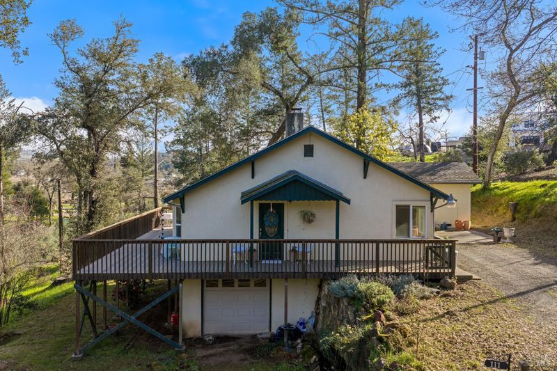 Tucked away in a quiet, private setting beside scenic vineyards and towering trees, this charming older stucco home offers a wonderful opportunity to create something truly special. A large deck wraps along two sides of the home, perfect for relaxing, entertaining, or enjoying peaceful vineyard views. Inside, you'll find a spacious kitchen, a sunny dining room, indoor laundry hook-ups, and central heat. The home features a second bedroom and bath with a separate exterior entrance and its own private patioideal as a guest suite, extended living space, or potential rental room. Additional highlights include a basement garage with storage room, plus ample space to park an RV or add a storage unit. Set on a large 1 acre lot with room to garden. This property is full of charm and potential, making it a great place to remodel and truly make your own while enjoying country living surrounded by Napa Valley charm. This is the first time this well loved property has been on the market in decades. Don't sit on this one! Come see this lovely setting and cute cottage while it is still available.