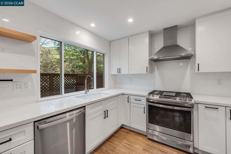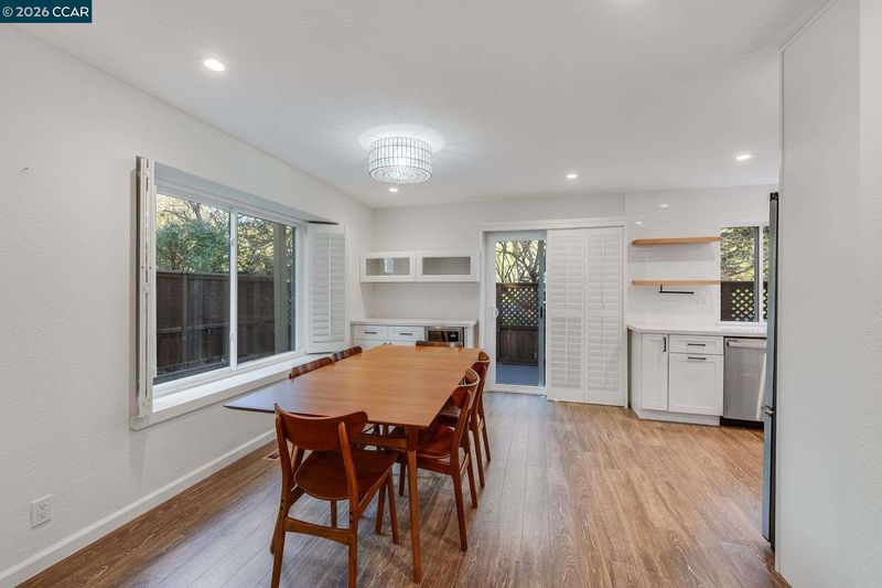 Centrally located, this open concept Carroll Ranch townhome features stunning natural light and a flexible floorplan. The front door opens to a two-story living room with gas fireplace, built in shelving, plantation shutters, and direct access to the side patio area. The modern farmhouse style kitchen has white shaker cabinets, stainless-steel appliances, quartz countertops and wine refrigerator adjacent to the spacious dining area. Perfect for guests or a home office, the main level also includes a bedroom plus half bath and full-size laundry. Upstairs has two large bedroom ensuites with attached bathrooms, plantation shutters and ceiling fans. Outside there are two patios with raised garden beds. Two car attached garage, central heat and air, hardwood floors, recessed lighting, Nest Thermostat, dual pane windows. Walking distance to the community pool, Rheem shopping center and Campolindo High. Minutes to downtown Lafayette and Orinda, Hwy 24 and BART. Nothing to do but move in!