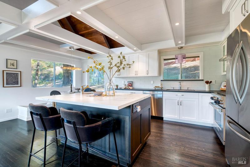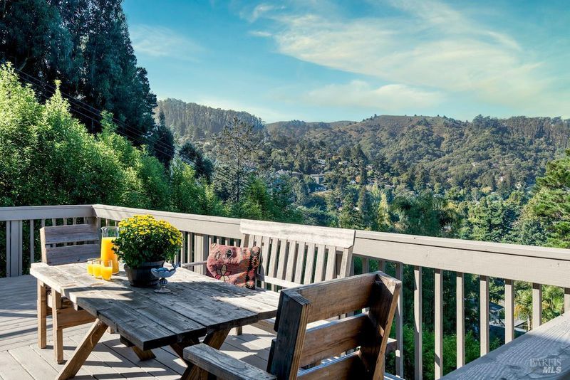 Discover 20 Poppy Lane, a boutique updated view home perched atop a private road, with the warmth of Tam Valley. Exceptional location: offers breathtaking West facing views overlooking the protected Marin Headlands & GGNRA. This golden panorama appears like a painting. You'll also capture the iconic peak of Mount Tam. This chalet-style home exudes timeless appeal: warm redwood ceilings & rich oak plank hardwood floors. A central fireplace creates a cozy focal point for relaxing evenings. Step outside to an expansive wrap-around deck that envelops the front & sides of the home, with ample, sun-drenched spaces for outdoor dining, entertaining, & epic views. A testament to solid construction. Built by Merritt Bitz, a noted local boutique homebuilder of the 1970s, with classic exterior redwood siding. Enjoy easy parking, with a recently augmented 2 car carport, plus additional parking. Unparalleled location: Just minutes down the road is the popular Tam Junction, offering fine shopping, dining, groceries, and a strong sense of community. The home is also near Tam Elementary, ranked one of the best K-5 schools in Marin County. For outdoor enthusiasts, it's a short, scenic drive to Stinson Beach and provides immediate access to countless miles of epic hiking and mountain biking trails.