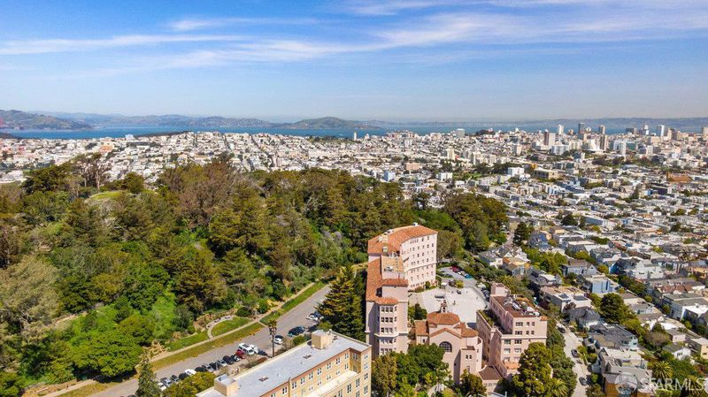 Buena Vista East Ave, pano views condo at Park Hill, has it all to offer. Park Hill condo complex is in this gorgeous, historical, Spanish Revival Landmark building on a 3.5 acres of manicured ground and was converted to condominiums in 1986. This landmark building is perched on the hilltop and adjacent to the serene Buena Vista Park, with tennis courts and a children's playground, in the Buena Vista Ashbury Heights neighborhood. The condo amenities include a daytime front desk concierge, a magnificent clubhouse in the restored chapel, a rooftop deck with views and a kitchen, and private storage. Resident parking thru the security gate. Centrally located within walking distance to Cold Valley, Duboce Park, Golden Gate Park, and Divisadero Corridor shopping and dining. This large one-bedroom offers panoramic views of the City, Bay, East Bay, and beyond as one enters this gorgeous home.