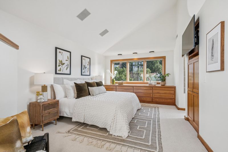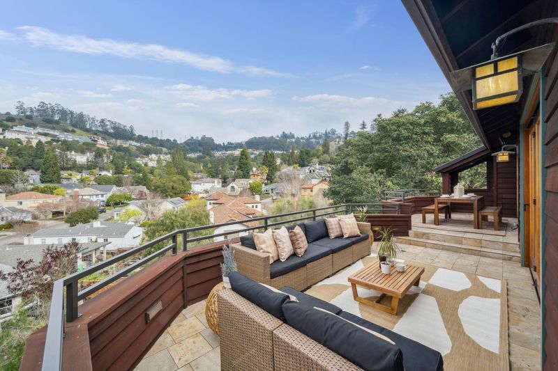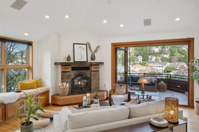 Extraordinary living awaits in this elegant 3+BD/2.5BA contemporary redwood home in coveted Glen Highlands, offering the ease of newer construction with breath-taking amenities. Behind a private gate, the home’s garden sanctuary welcomes you with the sound of an enchanting waterfall and multiple seating areas. Double glass doors open into a spacious 2966 SqFt open floorplan with cathedral ceilings. While family and friends gather around, cook in the chef’s kitchen boasting two sinks, Sub-Zero, wine fridge, and Gaggenau 6-burner stove. The adjoining living and dining areas have built-in window seating and glass doors to a wide deck for easy indoor/outdoor living. A wall of windows make the East Bay hills your backdrop. Upstairs find the primary suite: a private, sun-filled Zen retreat with walk-in closet, built-in dressers, and huge split bath with a shower room, soaking tub and double vanity. Two more bedrooms occupy the lower level, along with a stylish large bath, laundry, storage/bonus room, and den with French doors onto another deck. Outside, a deep, professionally landscaped yard features a recently installed fruit orchard and seating area. Solar panels top a 2-car garage. Down the road, enjoy Montclair Village, Rockridge amenities, BART, and regional parks.