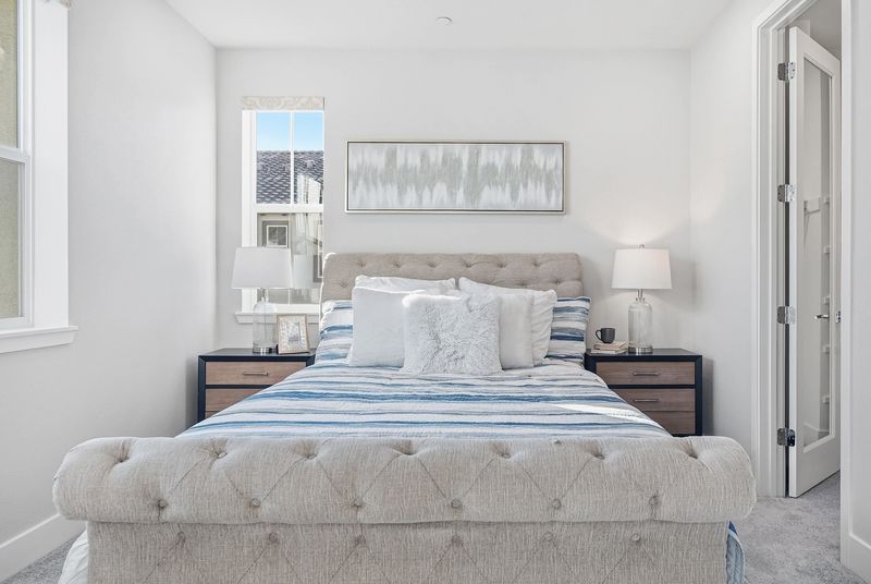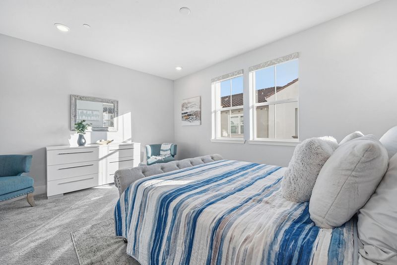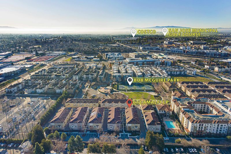 Nestled in a prime east-facing corner location with views of Bob McGuire Park, this stunning townhome offers luxury living in the highly sought-after Siena community. Built in 2019 and featuring the largest floor plan, this nearly new 3-beds, 3.5-baths residence spans approximately 1,988 sq ft and is filled with natural light, 9-foot ceilings, and an open-concept layout. The first level offers a versatile bonus room with a half bath and laundry closet, ideal for a home office or gym. The main living level features a spacious living and dining area and a gourmet stadium-style kitchen with premium cabinetry, white quartz countertops, large island, mosaic backsplash, and stainless steel Italian Bertazzoni appliances (Free standing gas range, Microwave dishwasher and refrigerator). A bedroom with a full bath on this level adds flexibility. The top level includes two private bedroom suites, highlighted by a luxurious primary retreat with a walk-in closet and spa-like bath with dual sinks and a glass-enclosed shower. Walk to Bob McGuire Park with tennis courts, playground, BBQ area, and amphitheater. Close to Milpitas BART, 680/880/237, Great Mall, Trader Joe’s, Safeway, dining, and top-rated schools: Mabel Mattos Elementary, Rancho Milpitas Middle, and Milpitas High School.