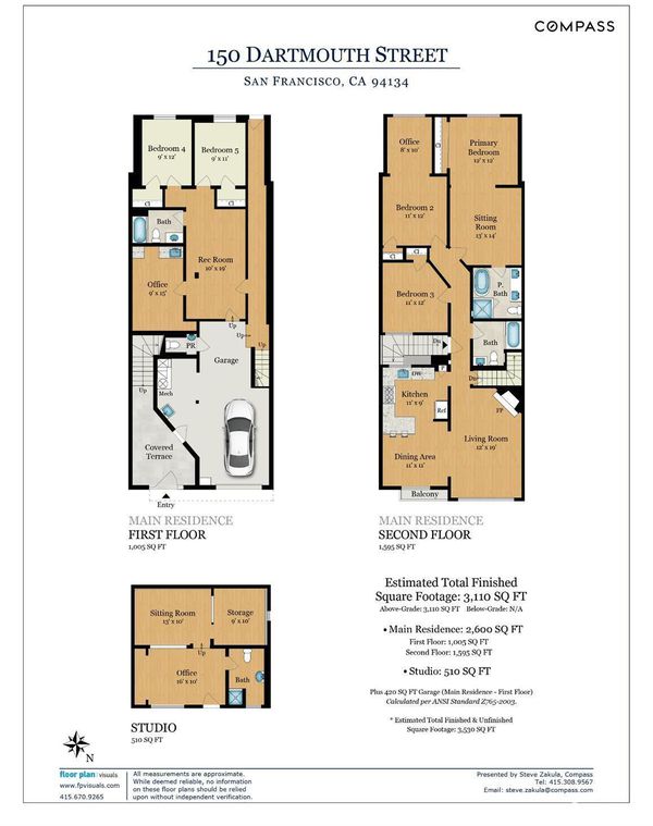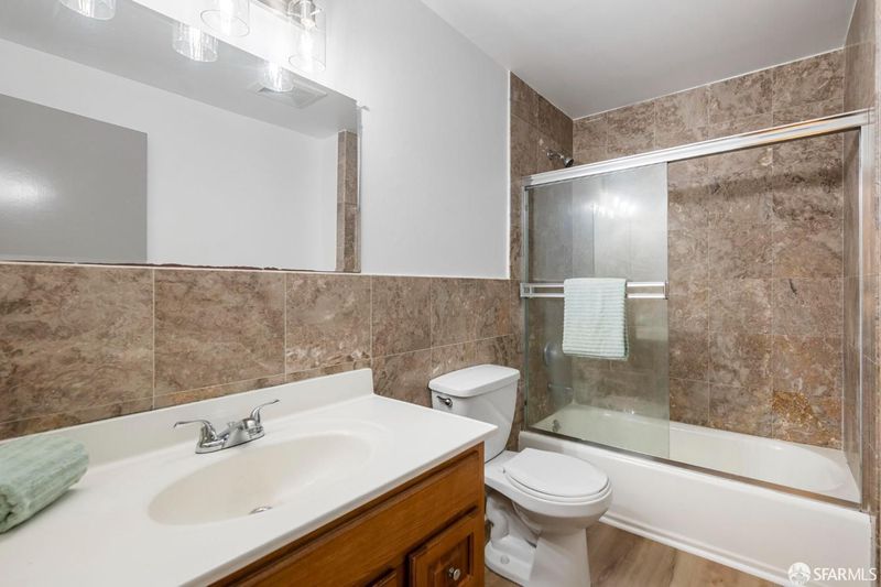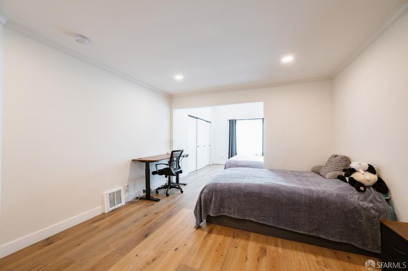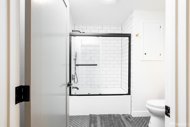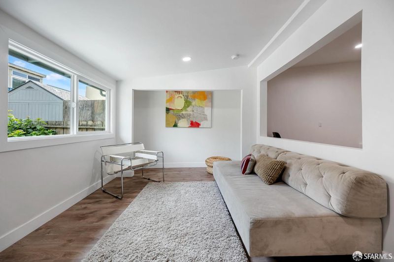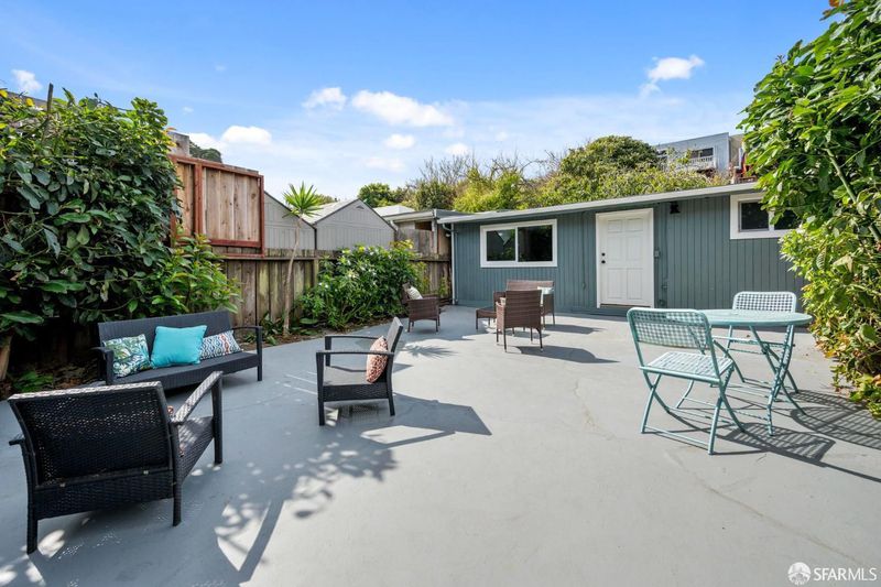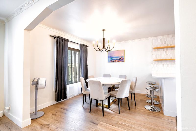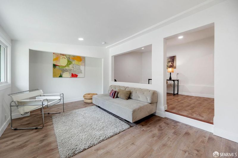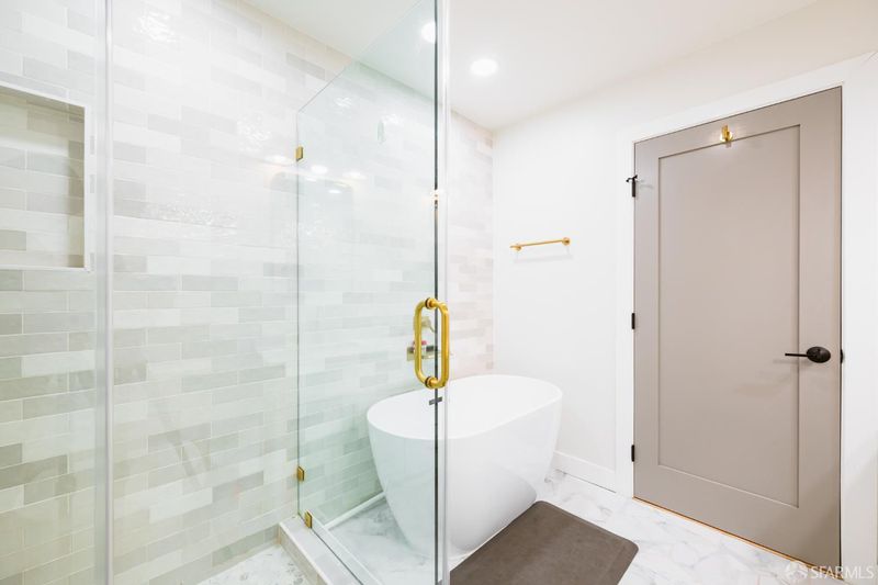 Extensively renovated home with open-concept living and a separate studio cottage, blending modern finishes with thoughtful design. The main residence features a new kitchen with Carrara quartz countertops, polished marble mosaic backsplash, white shaker cabinetry, breakfast bar, and new appliances including a gas range with hood. The open kitchen and dining area flow seamlessly into the living room with a wood-burning fireplace and marble mosaic tile surround. The primary suite offers a seating area and a spa-like bath with soaking tub, glass-enclosed shower, marble mosaic and pearl opal ceramic tile, and a Jasper double-sink vanity. Two additional bedrooms and a full bath with skylight complete the main level. Features include recessed LED lighting, oak engineered hardwood floors, porcelain tile entry, terrazzo front stairs, and an interior stairwell to the garden level. The garden level includes two bedrooms, a family room, full bathroom, and office, with sandbank luxury vinyl flooring and carpeted bedrooms. Additional upgrades include new roof, windows, doors, lighting, interior and exterior paint, plumbing, electrical, and security gate. The garage includes a new half bath, laundry hookups, and a 200-amp electrical panel ready for EV charging. A detached three-room cottage (built in the late 1970s, unpermitted) has been updated with a new roof, flooring, windows, lighting, heater, water heater, and bathroom. The home and cottage are separated by a garden patio highlighted by a mature avocado tree.