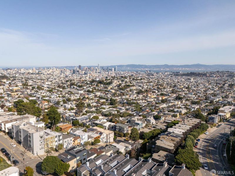 Views for days! Set on a quiet cul-de-sac in the heights of Noe Valley, this expansive 2-level Condo offers exceptional light, flexibility, & panoramic views of the Downtown San Francisco skyline & East Bay hills, visible from nearly every room. The main level is designed for effortless living & entertaining, with an updated gourmet kitchen featuring generous cabinetry, quartz countertops & bar counter, opening to the living & dining areas where the views take center stage. 3 bedrooms plus a newly created laundry room add practicality to daily life. The primary suite is a true retreat, complete with large closets, dual vanities & an oversized shower. 2 additional well-sized bedrooms shared a full bathroom off the hallway.The lower level offers a spacious finished great room anchored by a cozy fireplace, ideal as a media room, entertainment space, or guest quarters, supported by a full bathroom and opening directly to a second view deck. A beautifully reimagined shared backyard & 2 decks create an exceptional indoor-outdoor lifestyle, with an inviting dining & entertaining area overlooking a turf lawn designed for play. The home also offers new wide-plank oak floors, generous storage, one-car side-by-side parking, & convenient access to the community garden across the street.
