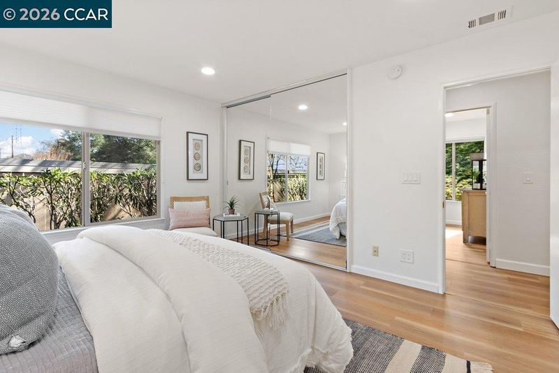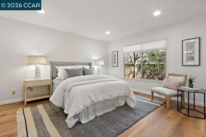 This charming Santa Cruz in Rossmoor is accessible for everyone with no steps to the front door and it is a single-level model which means you don’t have neighbors above or below your unit for ultimate privacy. Inside this three bedroom, two bathroom home you’ll find lots of desirable updates including smooth ceilings, dual pane windows with decorator window coverings and a large French-door style sliding patio door. The Kitchen and both Bathrooms have sleek stone counters and modern sinks and fixtures. Beautiful hard-surface floors throughout aren’t only stylish but are easy to maintain and clean. The Primary Bathroom has a stunning stall shower with both rain and handheld shower heads and both Bathrooms have sought-after Toto toilet bidet seats. A dramatic skylight in the Living Room provides lots of natural light and recessed lights throughout the home make it light and bright. Enjoy our wonderful Walnut Creek weather from the private fenced patio off your Living Room. You can move right in to this pristine level-in condo and start taking advantage of all the community's fantastic amenities.
