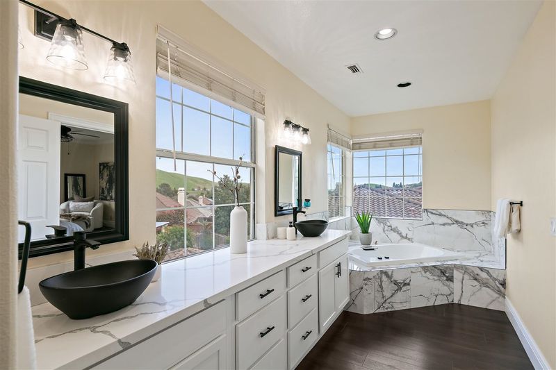 - Stall Shower, Tile, Updated Baths, Closet, Double Vanity, Stone, Window