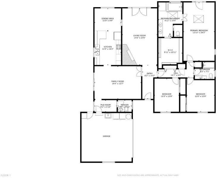 Renovated 1 story home with a roomy floor plan and large primary suite!