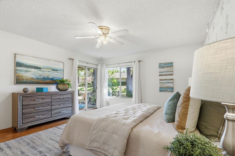 Fantastic Single Level - NO STAIRS Condo Villa within The Villages Golf & Country Club, a gated 55+ Community located in the Evergreen Hills of Silicon Valley. This light and bright 1497sf home is located in Hermosa Village with spacious Living room with high ceiling and comfy fireplace plus Dining room for entertaining -- both with sliders to large back patio *** Great kitchen with lots of cabinetry, pantry, breakfast nook and built in hutch *** Primary bedroom ensuite has slider to back patio and 2 large closets *** Guest bedroom has built in cabinetry plus access directly to and from the garage *** Inside laundry room with washer & dryer is attached to the Guest bathroom with Hall linen closet *** Two garages and lots of storage cabinets with slider to front courtyard. Very quiet cul-de-sac surrounded by lush trees and walkways. ** The Villages offers all the country club amenities you could want and deserve to enjoy: 18 and 9 Hole Golf, Tennis & Pickleball courts, Bocce, Billiards, Fitness Center, Hiking Trails and Clubs for any interests. Also available is a Post Office, Library, Wood Shop, Potteryand Arts & Crafts rooms *** Beautiful Clubhouse for major events & holidays, Fine Dining with views plus casual Bistro & Patio for fun dining ***** Your new Lifestyle awaits!