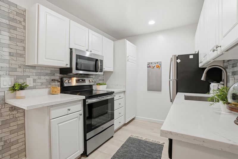 - Dishwasher, Electric Range, Free-Standing Range, Refrigerator, Stone Counters, Electric Range/Cooktop, Disposal, Range/Oven Free Standing, Updated Kitchen