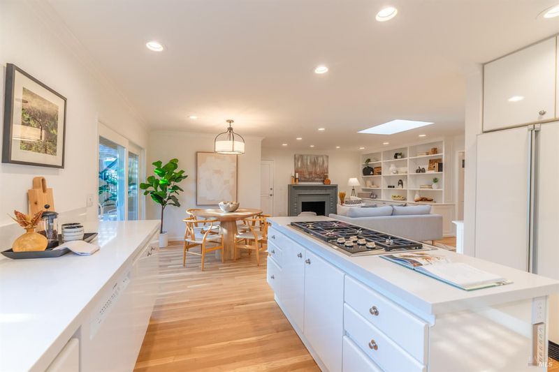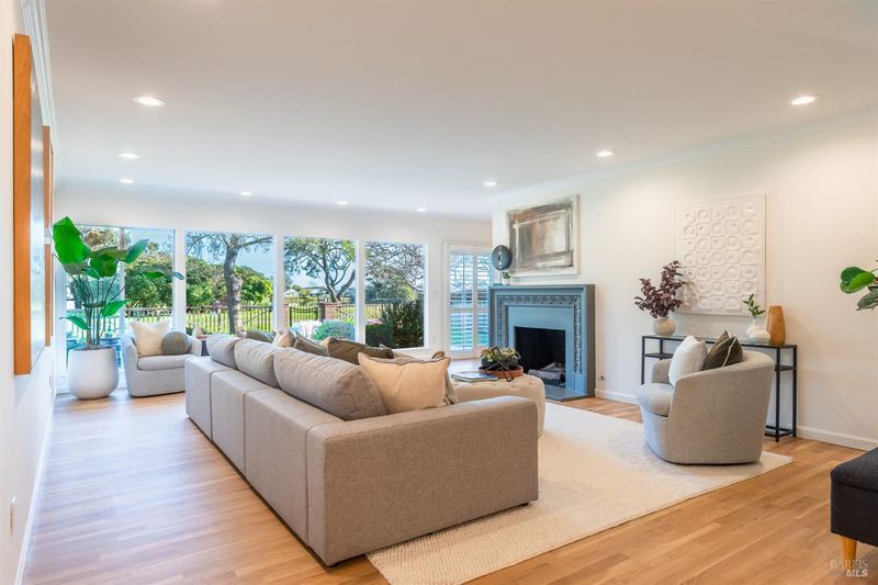 Enjoy ultimate indoor-outdoor living at this gorgeous, single-level remodeled home situated on the Peacock Gap Golf Course. Upon entry, you are immediately captivated by views through the living room to the spacious backyard patio and lawn and the lush fairways and lagoon beyond. The kitchen has new gorgeous quartz countertops, including a full island and extra seating at the peninsula. A Bosch dishwasher, gas Wolf range, warming oven, and convenient pantry make gourmet meal prep a joy. The convenient adjacent breakfast room opens onto a trellised private side garden through sliding glass doors. The family room has a second vintage gas fireplace, skylight, extensive storage cabinets and wall of built-in shelving. Stunning newly refinished natural oak floors throughout, and gorgeous new wool Berber carpets in the four bedrooms. The Primary Suite features spectacular golf course views, access out to the patio and gardens, a large walk-in closet, and an attractive updated primary bath. Recessed LED lighting and contemporary chandeliers are elegant highlights. Newer Timberline HDZ lifetime roof put on in 2022, and the entire exterior and interior have been recently painted. The garage has an attractive epoxied floor, a newer heat pump water heater, and extensive storage cabinets on both sides. The outdoor spaces are impressive with charming brick walkways, level front lawn, an oversized front porch, and mature landscaping surrounds the home. An additional side brick parking area is great additional space for parking for activities. The spacious private backyard features a large brick patio spanning the length of the home, a level lawn, trees and plantings, providing an ideal backdrop for hosting gatherings or relaxing on your own. The property is fully fenced with locking gates for security. The home is loocated just down the street from the popular Peacock Gap Park with tennis, lawns, and playground. Nearby are China Camp State Parks world-class hiking and biking trails, McNear's Beach with community pool, lawns and picnic areas, Andy's Market, and the bay-front walking paths. This one truly checks all the boxes for living the quintessential Marin lifestyle.
