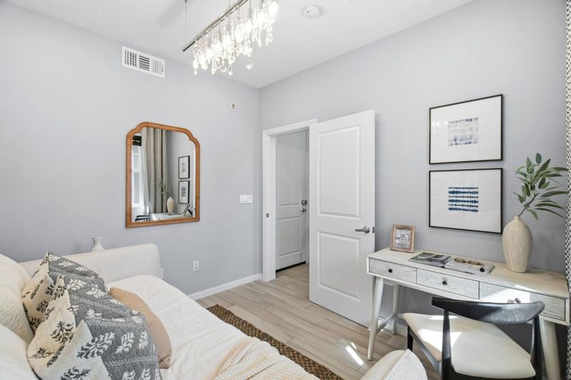 This 6-year-old Pulte-built townhome was originally a model home and offers a modern, light-filled layout. The home features two suites on the top level and a flexible office or bedroom on the entry level, along with 9-foot ceilings and approximately $70,000 in builder upgrades.The open-concept main living area includes two oversized balconies, a half bath, and a well-appointed kitchen with granite waterfall countertops, full backsplash, soft-close cabinetry, under-cabinet lighting, stainless steel appliances, and a gas range. Additional features include recessed lighting, crown molding, window treatments, dual-zone central AC, in-unit washer and dryer, and a tankless water heater in the finished garage. Conveniently located near Highways 237, 101, and 85, Central Expressway, Downtown Mountain View, Caltrain, and Light Rail.