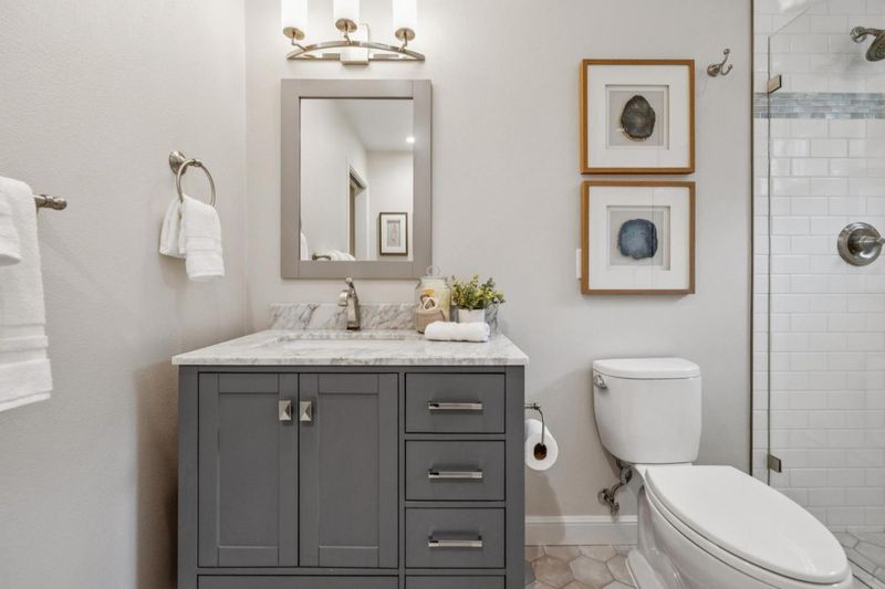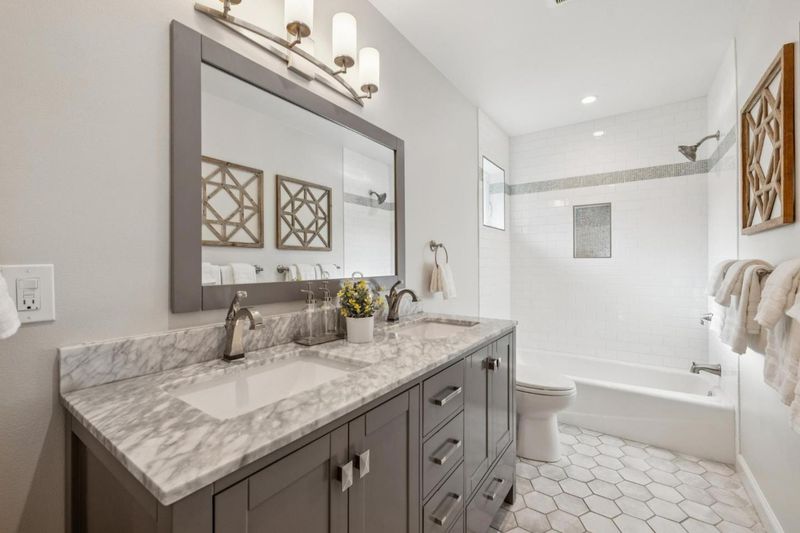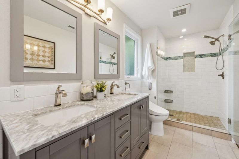 - Double Sinks, Full on Ground Floor, Primary - Stall Shower(s), Shower over Tub - 1, Stall Shower, Tub, Tub in Primary Bedroom, Tubs - 2+, Updated Bath