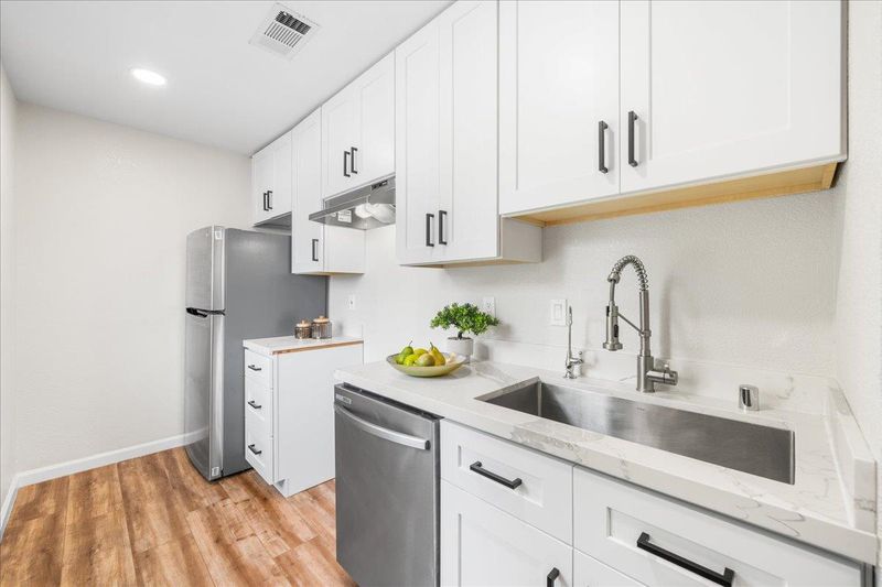 - Dishwasher, Electric Range, Refrigerator, Gas Water Heater, 220 Volt Outlet, Stone Counters, Electric Range/Cooktop, Updated Kitchen