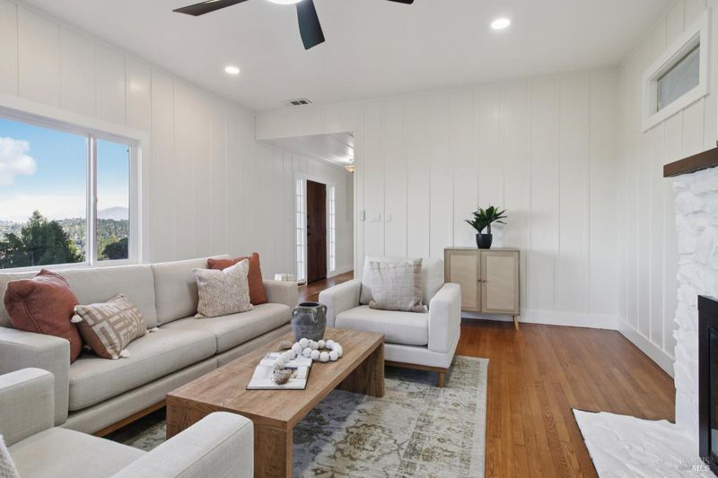 Enjoy top-of-the-world forever views, top-rated Orinda schools, flat and usable yards, future expansion into the ADU, and ultimate privacy on 1.67 acres as the last home on the street backing to undeveloped open space. 85 La Encinal is truly a gem. Drive up your freshly paved driveway to the parking pad in front of the oversized 2-car garage plus shop. Walk up the short flight of stairs to arrive at the front door, and don't forget to turn around to take in the view! Step into a welcoming foyer. To your right is an expansive living room with high celings, board and baton paneling, and a stone wood-burning fireplace. The french doors walk out to a redwood deck overlooking the first of two lawns. Enjoy spectacular views of sunrises over Mount Diablo, look out over the Orinda Valley, and take in the Briones Reservoir. A concrete pad is ready for your future hot tub or BBQ. Back inside the tour continues through the well-appointed kitchen and dining nook. Don't miss the 1/2 bath tucked into the laundry room. The secondary bedroom is spacious. The primary rooms include a large office, extra closets, and a large separate bedroom. Back outside a winding brick path takes you to a second, larger yard. Follow the pathway to the detached ADU shell, ready for your imagination to make the space your own. New designer paint colors inside and out, new carpets, refinished hardwood floors, updated lighting, and so much more! This opportunity will not last.