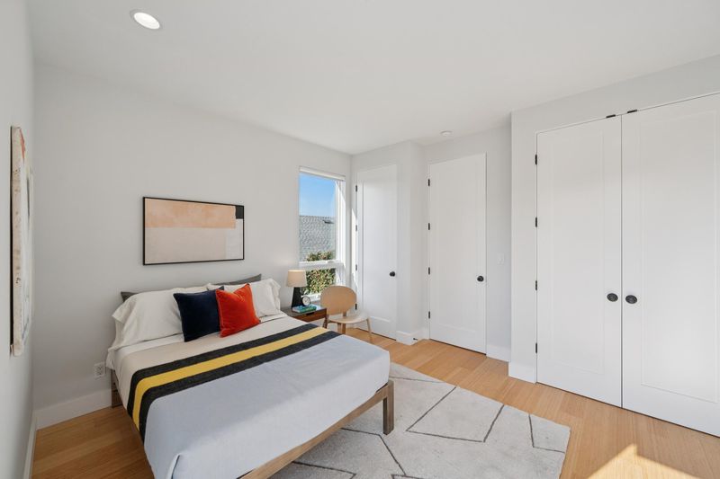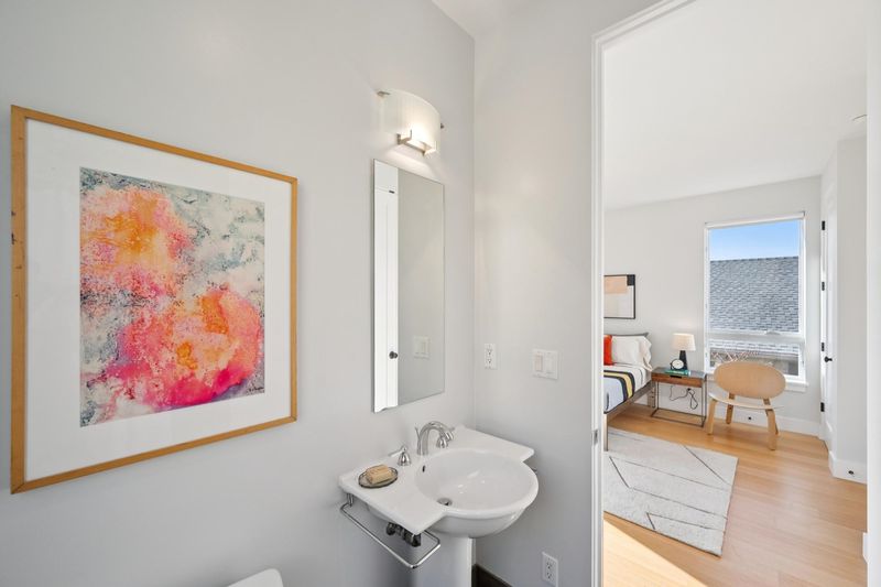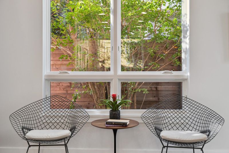 Stunning modern masterpiece set among lush gardens—a true urban oasis! Designed by award-winning architects Siegel & Strain, this 2008 custom home features innovative design and high-quality eco-friendly finishes. A dramatic foyer opens to soaring ceilings and a custom reclaimed fir–clad central core. Light-filled interiors showcase a sculptural open staircase, vaulted ceilings, and clerestory windows. The open main level offers seamless indoor-outdoor living with garden views and direct access from the kitchen and dining area to the private rear garden. Upstairs, two spacious en-suite bedrooms are separated by a bridge, each opening to charming decks. The primary suite features vaulted ceilings, garden views, private deck, wall-to-wall closets, and a spacious bath. Radiant floor heating, dual-paned wood/clad windows, off-street parking. Walk Score 89, Bike Score 84. Close to Emeryville Greenway, Berkeley Bowl West, Bay Street, dining, I-80, BART & Amtrak shuttles.
