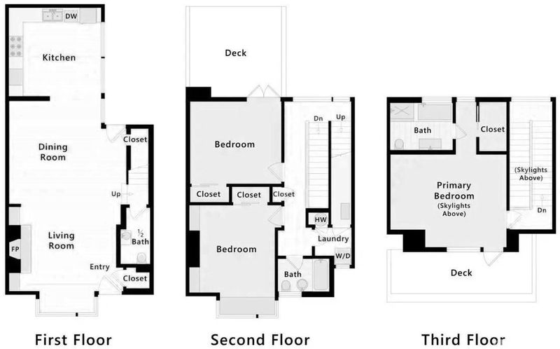 Stunning 3BR/2.5BA Pacific Heights home spread over 3 levels & nearly 2000 sf of modern living space. The light-filled home boasts expansive windows that look out onto tree-lined Sacramento St with beautiful views of the charming Presidio Branch Library. The open concept main floor features a spacious great room with wood-burning fireplace, a beautiful designer dining area, a chef's kitchen with high end appliances and island, and a half bath. The second floor offers two bedrooms, one bath and a large, private deck. The upper level is home to the primary bedroom with ensuite bathroom and a second private deck with panoramic views of Downtown and Sacramento St. Designed by a contemporary SF architect, the 4-unit building provides a private entry off a shared courtyard. 1 car parking with option to lease additional space in the attached garage, in-unit laundry room, and xl storage in the garage complete the home. Prime Pacific Heights location steps from world class restaurants, boutiques, and more. Easy access to public transit, parks, and more.