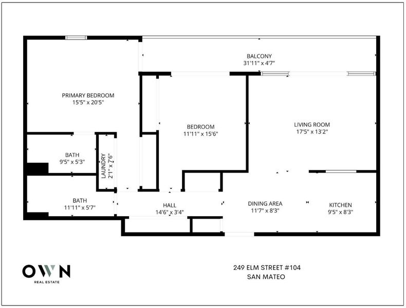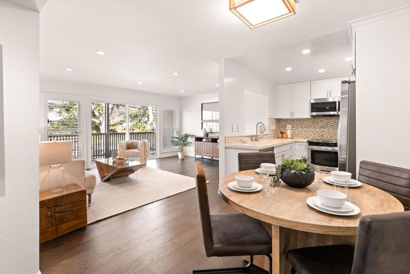 Welcome to 249 Elm Street #104, a light-filled and well-maintained 2-bd, 2-ba condo with an open layout & modern finishes in the heart of San Mateo. This 1,060 sq ft residence offers seamless living & entertaining with an open-concept living, dining, and kitchen area. The kitchen feat stone countertops, stainless steel appliances, recessed lighting, a breakfast bar, & ample cabinetry. The spacious living room is filled w/ natural light & opens to a private balcony, creating an inviting indoor-outdoor flow, w/ both bedrooms enjoying balcony access. The primary bedroom incl recessed lighting and an ensuite bathroom w/ a modern vanity & glass-enclosed stall shower, while the second bedroom is served by a hallway bathroom w/ a shower-over-tub. Addtl highlights incl in-unit washer & dryer, engineered hardwood & luxury vinyl plank flooring, fresh interior paint, LED lighting, & a high-efficiency gas furnace w/Nest thermostat. The unit includes one assigned parking space, additional storage, and historical use of a second space (buyer to verify with HOA). HOA amenities include a pool, elevator, and comprehensive maintenance, with the assessment for the new roof (2025) and elevator updates fully paid. Ideally located near Downtown San Mateo, Caltrain, shopping, dining, and Central Park.