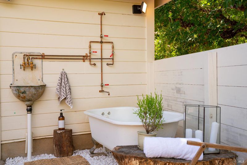 Escape to this boutique retreat tucked into the storied Deep End of Anderson Valley originally built in 1874 and completely restored down to the studs in 2024. Set on approximately 4.4 acres, this thoughtfully reimagined two bedroom, two bath farmhouse offers a rare blend of timeless character, modern luxury, and high-end design. Every detail of this home evokes the serenity of a boutique wine country retreat while neighboring award winning wineries. Envisioned as a turn key weekend escape or a high-performing luxury vacation rental. This home showcases elevated design and thoughtful craftsmanship from the chef-caliber Bertazzoni appliance suite and quartzite countertops, Venetian plaster hood, and Waterworks fixtures. In the bathrooms, luxury continues with an imported Calacatta Viola marble sink, and designer Cle tilevcreating spaces that feel both timeless and indulgent. Additional upgrades include a fire and corrosion resistant Galvalume steel roof, all-new electrical and plumbing, and outdoor claw foot tub. Modern amenities include Starlink, heat pump HVAC, 240v car charging. Additionally the property features a greenhouse, powered workshop, two barns, 15,000+ gallons of water storage, 22gal/min well, fenced garden, and heritage fruit orchard, commercially zoned.