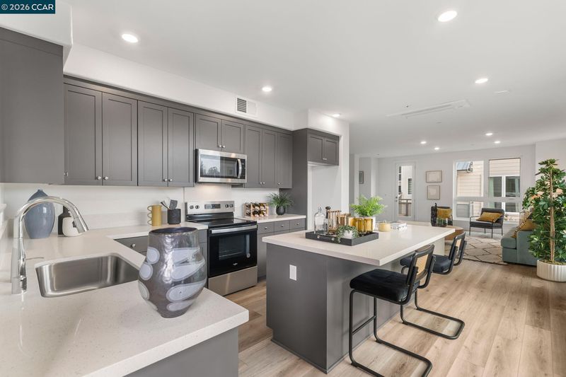 $15,000 Buyer credit! Welcome to Fusion! Stunning new construction townhome offers the perfect functionality. 3 bedrooms, 2.5 bathrooms, and 1804 square feet of thoughtfully designed living space, you’ll love coming home to Fusion. Expansive windows flood the open-concept layout with natural light. The gourmet kitchen is the heart of the home, featuring shaker cabinetry, quartz countertops, a designer tile backsplash, and a large island—ideal for casual dining and entertaining. Step out onto the private balconies! The spacious primary suite, which is on the main level, offers a spa-like bathroom & walk-in closet. A convenient powder bathroom & separate laundry closet complete the main level. Upstairs, two additional bedrooms & a full bath add flexibility and convenience.Tandem two-car garage & solar panels. Part of a boutique community of 55 residences, Fusion offers stylish, low-maintenance living close to top-rated schools; Moreau Catholic high school, Cal State EB, close to BART