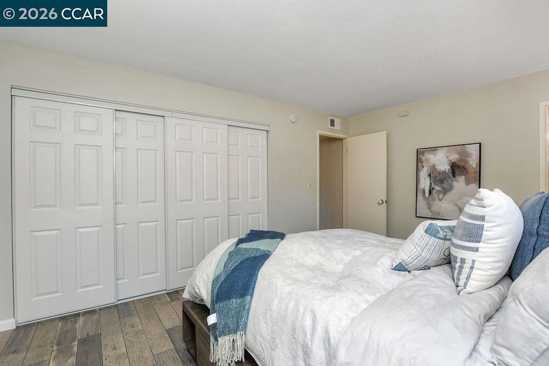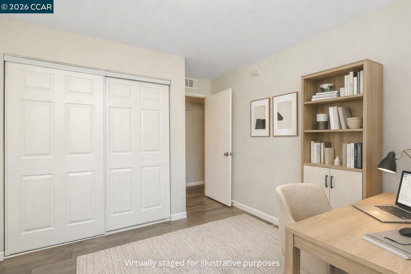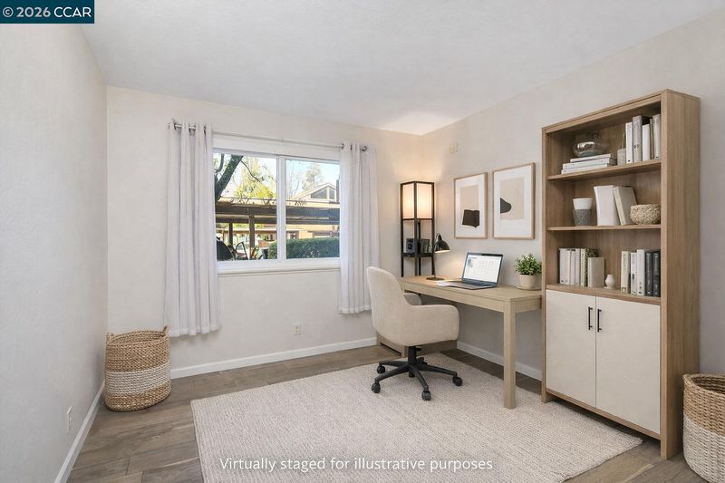 Welcome to this charming first-floor end unit in the beautiful Shadow Wood community! This 2-bedroom, 2-bathroom home offers a serene setting surrounded by mature trees, creating a peaceful retreat. Step inside to a spacious living room featuring a cozy wood-burning fireplace, perfect for relaxing evenings. The galley-style kitchen boasts a convenient breakfast counter with additional storage, seamlessly flowing into the dining area—ideal for entertaining. Large pantry/storage closet. Spacious Primary with Large closet. Enjoy the convenience of inside laundry with a stackable washer and dryer & dual-pane windows. Relax on your patio & enjoy your coffee on a peaceful morning with gate access to walkways. You'll have access to fantastic amenities, including a pool, spa, tennis courts, and clubhouse. Centrally located just minutes from shopping, dining, BART, and freeway access, this home offers both comfort and convenience. Some images in this listing have been virtually staged to help illustrate potential furniture placement and design concepts. Actual property conditions may vary. Open House Sunday 02/01, 11am-1pm.