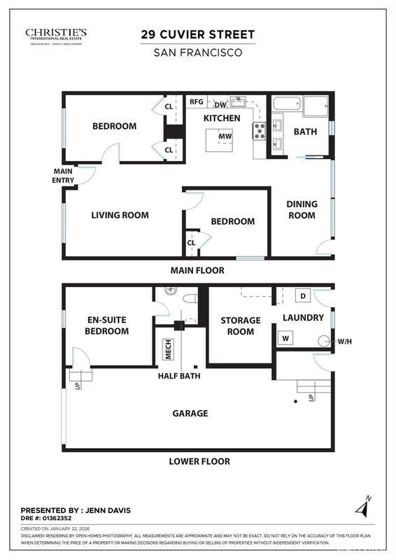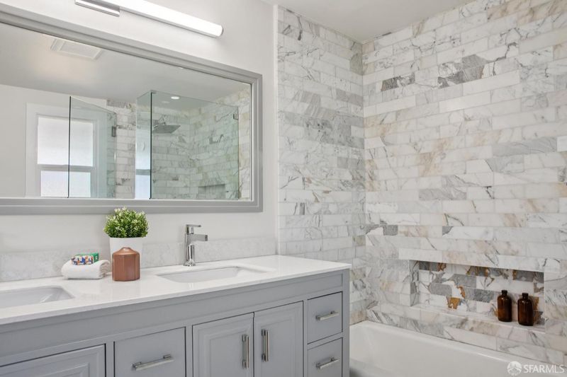 Charming, beautifully remodeled Bernal Heights home tucked away on a peaceful cul-de-sac, just minutes from the best of city living. This inviting residence offers 2 bedrooms and 1 bathroom, and a sunroom/dining room, plus a bonus room with an unwarranted half bath located off the garage. Inside, recent updates include a remodeled kitchen and bathroom with custom cabinetry, a center island, high-end appliances, a gas stove, quartz countertops, recessed lighting, Italian marble tile, and upgraded fixtures. The home is equipped with central heating and a Nest thermostat. Hardwood floors and abundant natural light enhance the interior. Additional improvements include new carpet and new interior and exterior paint. The fenced backyard offers outdoor space for everyday use. The property also includes a two-car tandem garage, a separate laundry room, and a large storage room. Ideally located within walking distance to Glen Park BART, with convenient access to Highways 101 and 280, the home is close to Glen Canyon Park, Glen Park Village shops and cafes, Cortland Avenue dining, Mission District amenities, local farmers markets, and tech shuttle stops. 29 Cuvier Street presents a well-maintained Bernal Heights residence in a convenient location. Expansion potential!