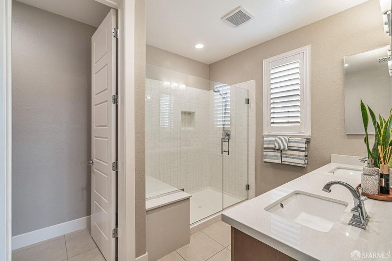 - Bidet, Closet, Double Sinks, Fiberglass, Shower Stall(s), Tile