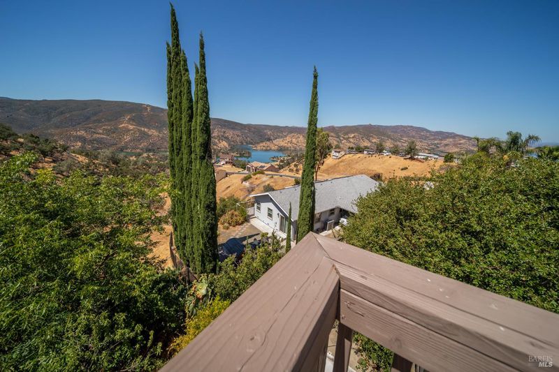 Perched above Lake Berryessa in the scenic Berryessa Highlands, this custom-built 2-bedroom, 2-bath home delivers jaw-dropping, panoramic views of the lake & surrounding mountains. Fully paid solar panels & 1,832 sq. ft. of living space on an expansive .32-acre lot, this is the ultimate retreat for those craving a peaceful primary residence or an adventure-filled weekend getaway. Bright & airy open floor plan featuring a spacious living room w/ a cozy pellet stove, oversized windows, & effortless indoor-outdoor flow to 2 large decksperfect for entertaining or soaking in the sunset over the water. The generous kitchen includes ample counter space & room to gather, while the upstairs loft offers bonus flex space w/ a slider leading to the upper deck. Both bedrooms are oversized w/ charming dormer alcoves, & the bonus area between bedrooms provides the ideal space for an office, reading nook, or additional sleeping area. Enjoy the oversized 2-car garage, full laundry room, plus RV or boat parking, mature fruit trees, & garden space. Whether you're unwinding on the deck, launching a boat at nearby Steele Canyon Rec Area, or stargazing in Napa's peaceful hills, this is Lake Berryessa living at its best. True wine country and lake life paradise w/ unbeatable value & unmatched views.